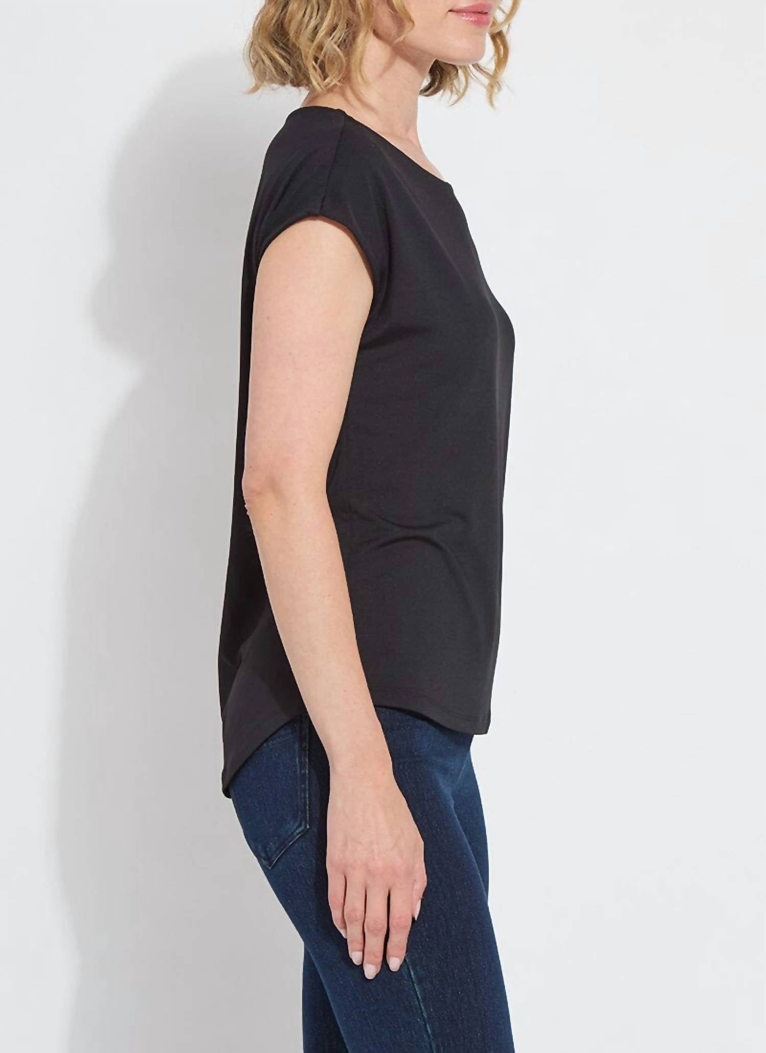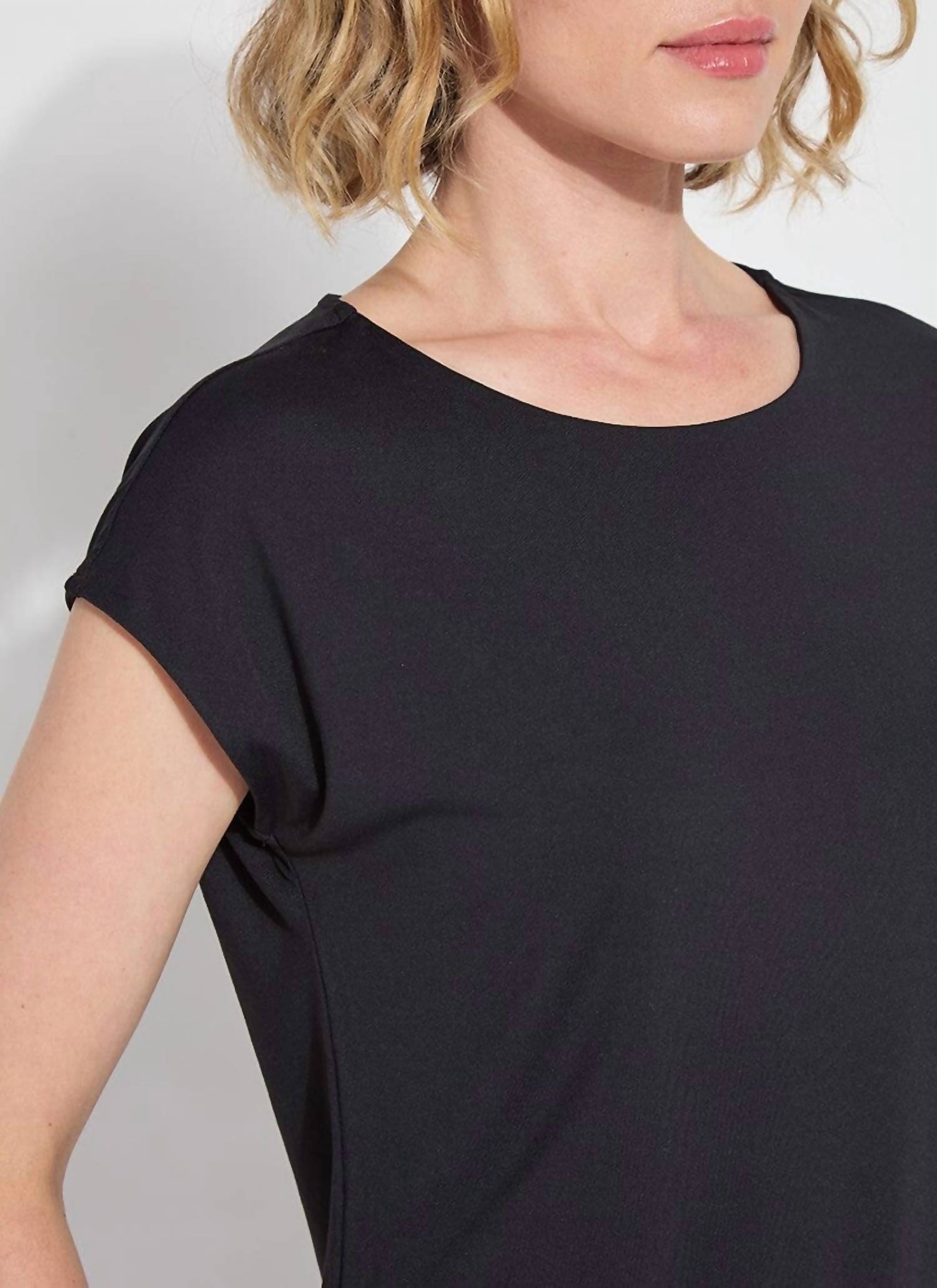 The short sleeve tee you'll want in every color. Introducing the Lyssentials Top by Lysse, designed for ultimate comfort in a chic black hue perfect for any evening event. This minimalist short sleeve tee features a drop shoulder design and scoop neckline, crafted from COOL-FRESH™ ECO Jersey composed of 88% recycled polyester and 12% lycra. Closure Type: Pull on. Care: Machine wash and line dry.