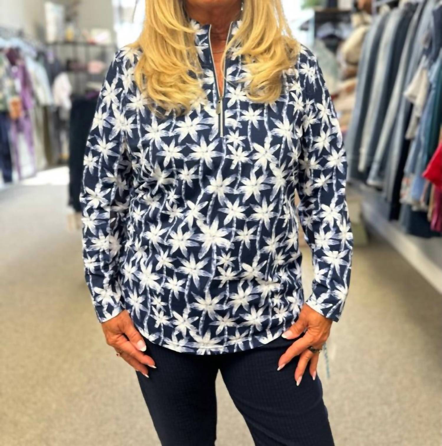 The perfect long sleeve tee that goes with just about anything. Elevate your wardrobe with the Lulu-B Bahama Print Half Zip Pullover in Turquoise Daisy, perfect for spring outings. Featuring long sleeves and a stylish mockneck, this pullover provides a cooling effect and impressive stretch. Crafted from 94% nylon and 5% spandex, it boasts UPF50+ protection. Quick to wear with its practical zip closure, it demands gentle care: hand wash and lay flat to dry.