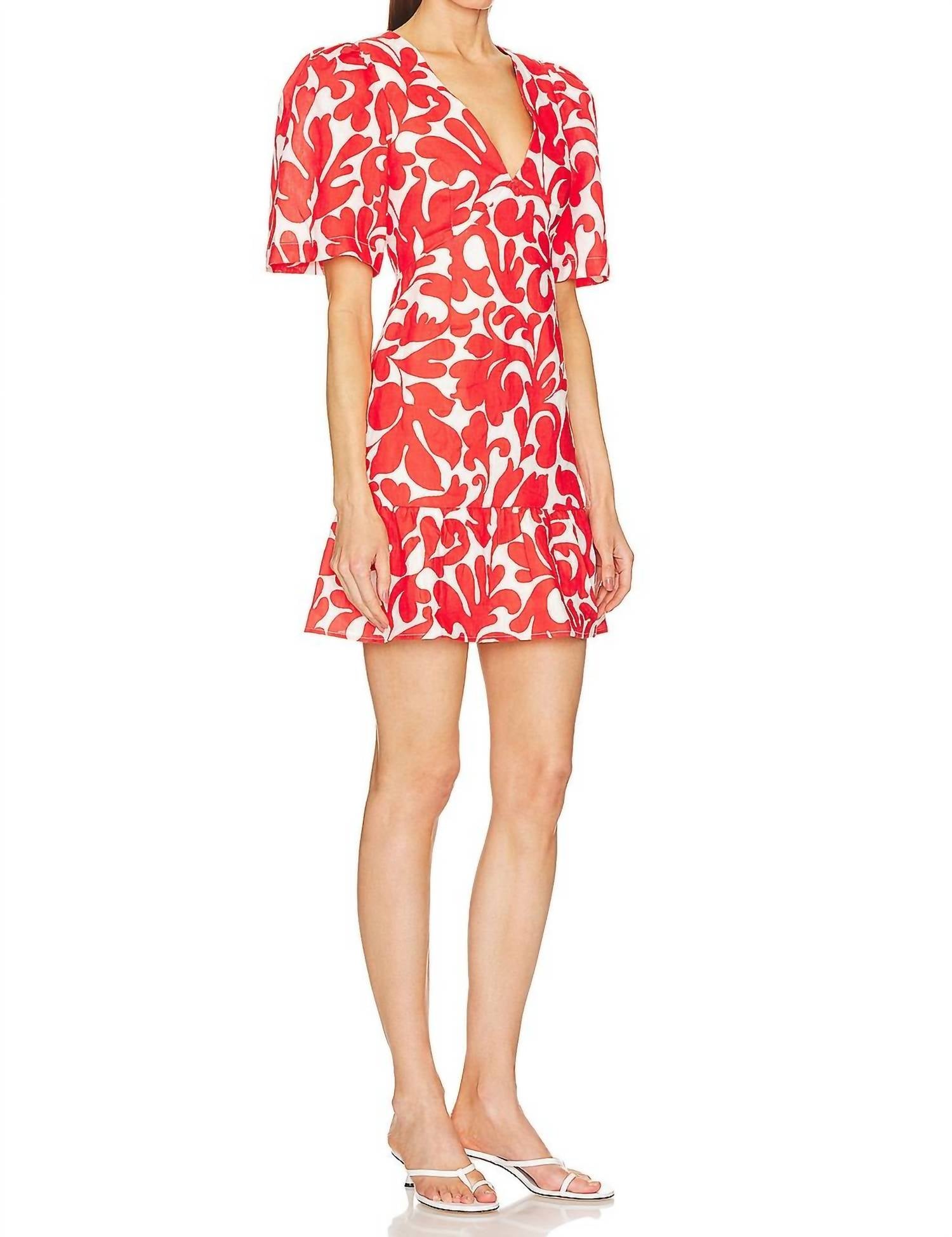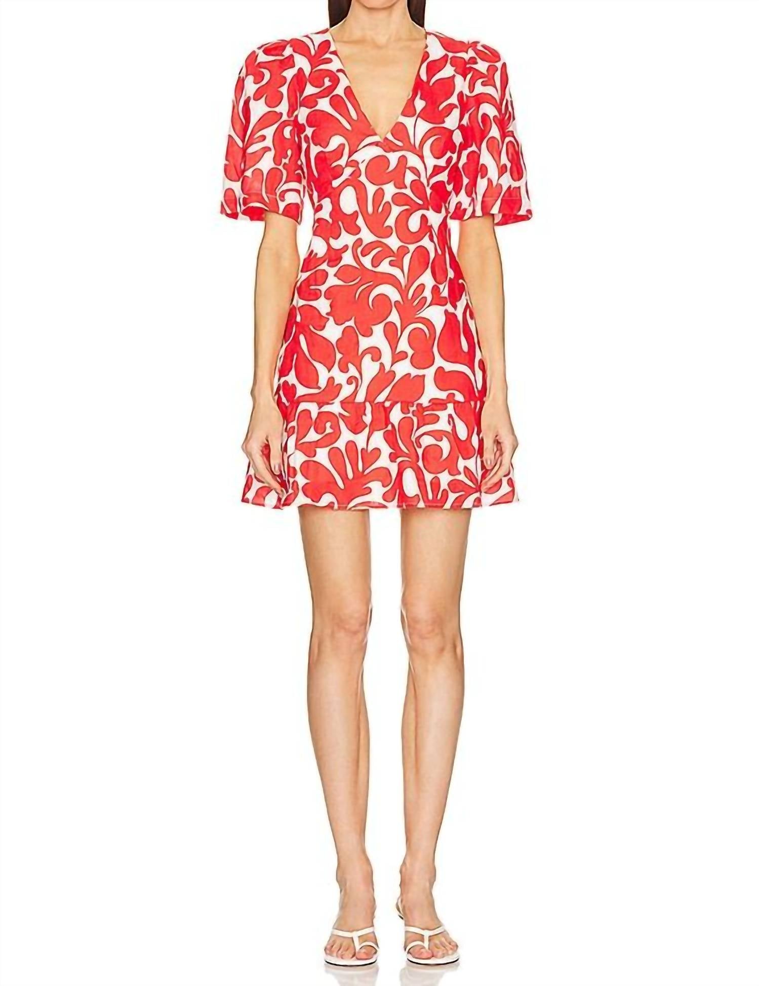 The kind of easy and flattering dress you'll be reaching for all season long. This vibrant mini dress is crafted for those who love bold style, featuring a striking patterned design that’s sure to stand out. A flattering V-neckline and short sleeves complement the easy A-line silhouette, offering both comfort and elegance. Perfect for any occasion, it’s a fashion-forward choice that radiates confidence.