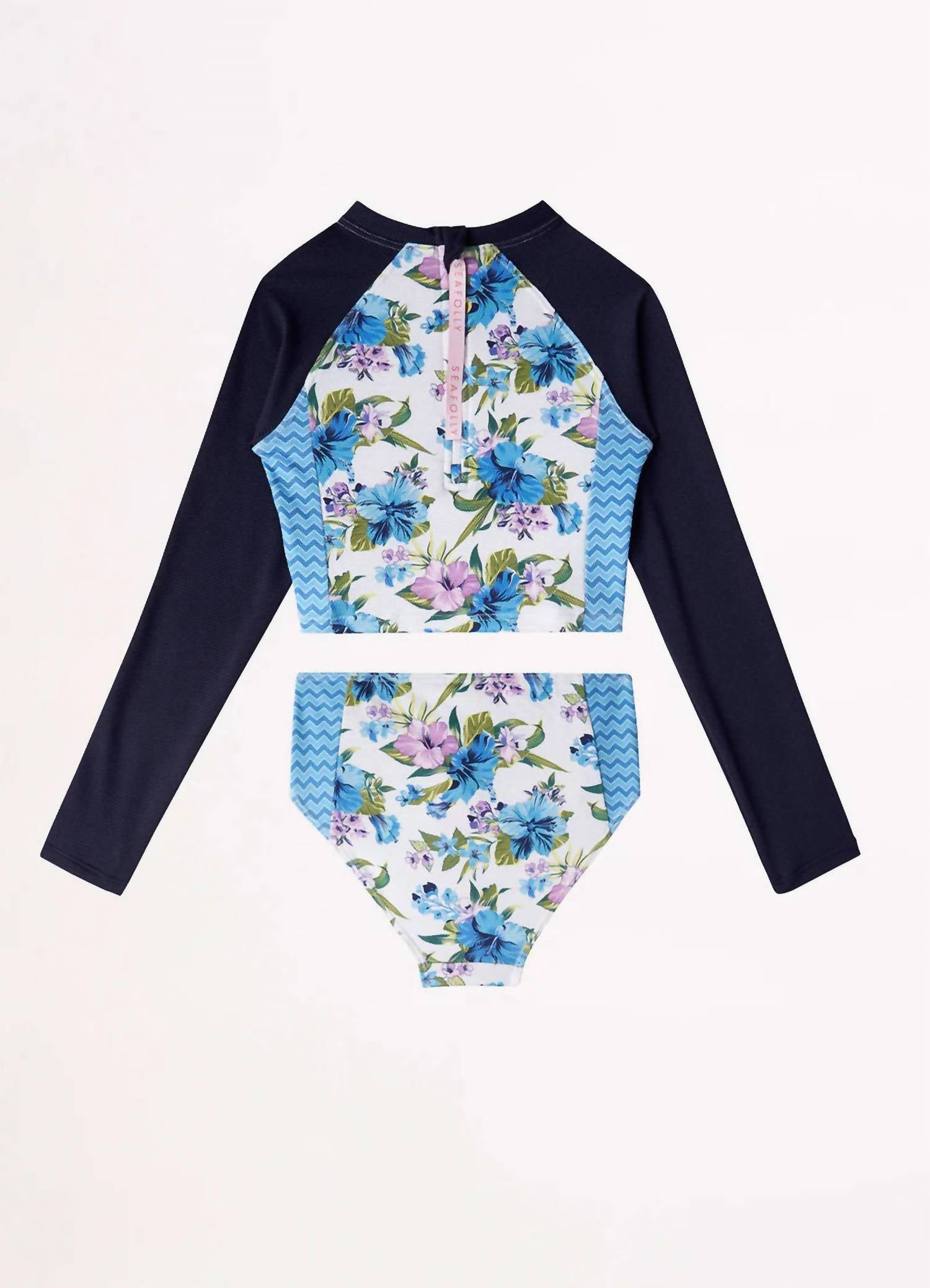 Introducing the Seafolly Girls Vanuatu Surf Set, a vibrant multicolor ensemble perfect for your young trendsetter. This set features long sleeves and a textured fabric for a trendy beach look. The high-waisted design with a back zipper ensures a comfortable, full coverage fit. Care: Hand wash, hang dry.