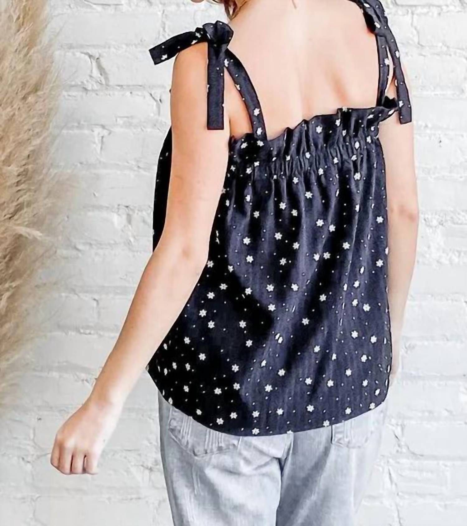 And The Why - Daisy Polka Dot Print Ruffle With Ribbon Tied Tank Top