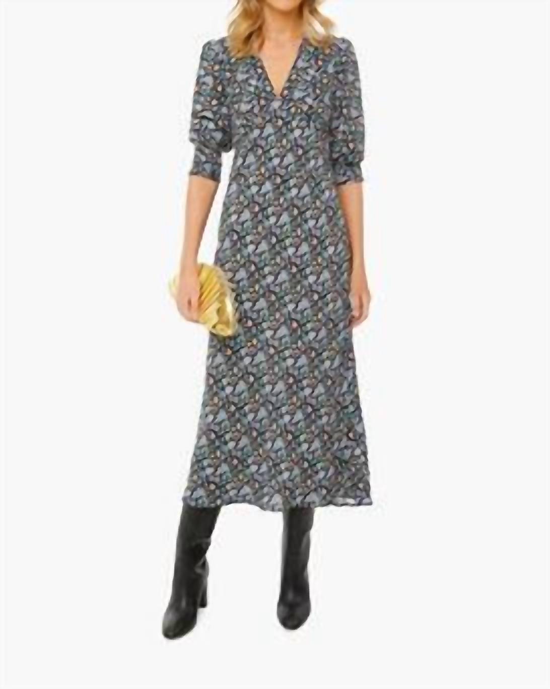 The Callie Dress by RIXO in a vibrant Miss Daisy floral pattern is your go-to piece for any occasion. Featuring three-quarter sleeves and a flattering V-neck, this A-line silhouette is crafted from a viscose blend for a comfortable fit. Its pull-on closure makes it easy to slip into, and it comes in a stylish midi length perfect for spring dinner parties or your Thanksgiving festivities. Care for it with a hand wash to keep this maximalist trendsetter in top condition.
