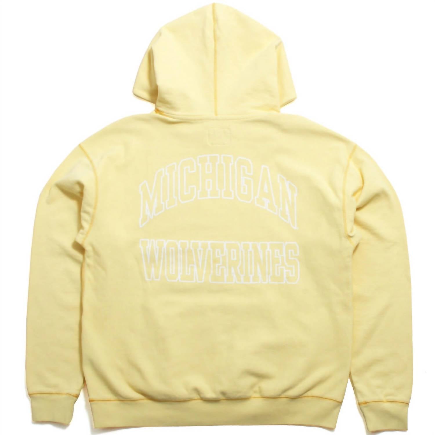 Cozy fabric, impeccable design - Meet the sweatshirt that you'll never want to take off. Introducing the Women's Wolverines Hookline River Hoodie in Dusted Maize by '47, perfect for showcasing your Michigan pride in style. This long sleeve hoodie is crafted from a durable cotton blend and features a pull-on design with a hooded neckline. Made from heavyweight 400 gsm reverse weave Tanker fleece, it offers a unique River Wash pigment-dyed look with distressed graphics for a vintage feel. With a modern drop-shoulder fit and functional kangaroo pocket, it’s an ideal choice for comfort and style.