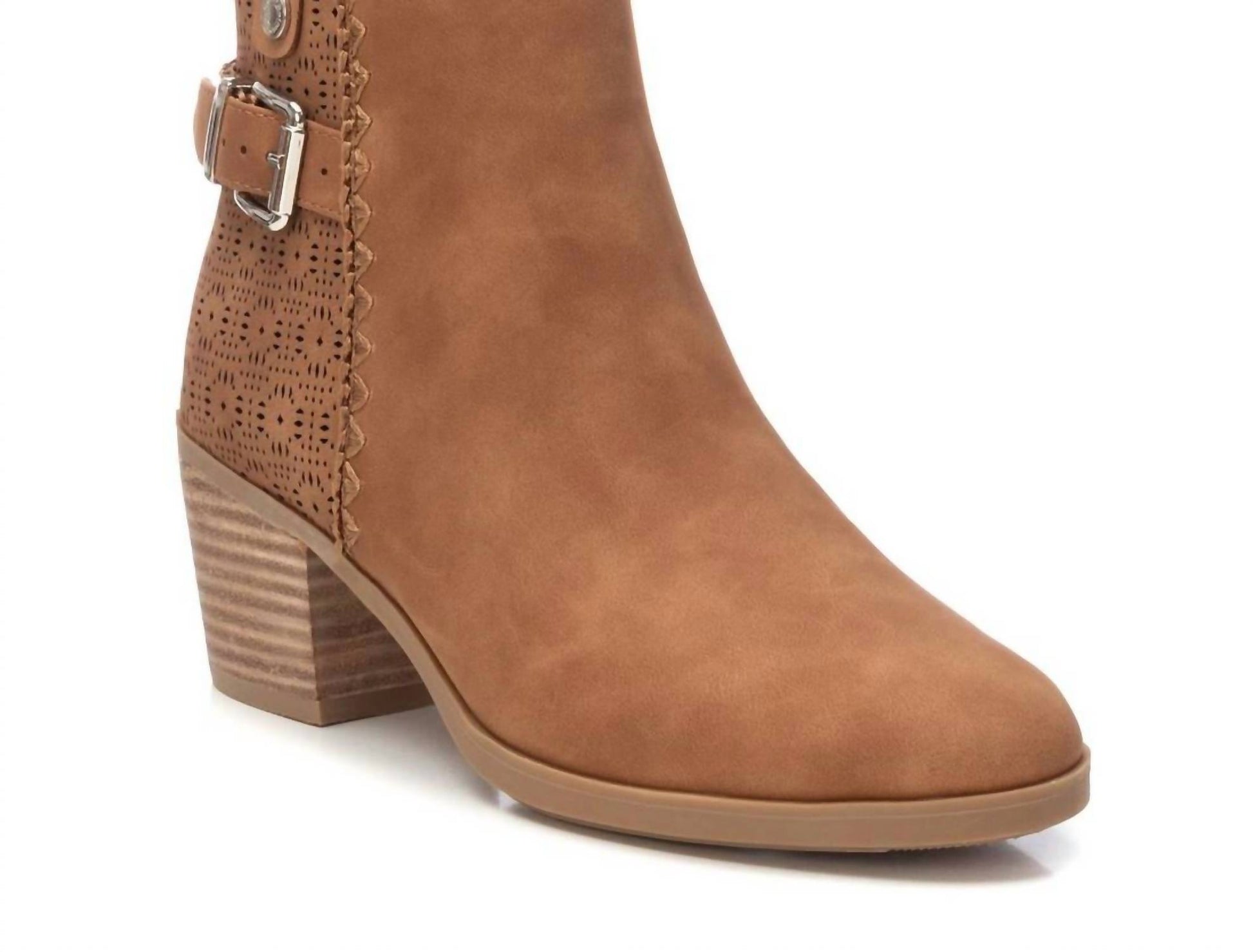 Introducing the Women's Ankle Booties in a chic hue, the perfect addition to any fashion-forward wardrobe. Crafted from premium faux leather, these booties feature a die-cut back, strap with a decorative buckle, and a convenient interior zip fastening. They boast a wide 5 cm block heel for added style and comfort, alongside a practical non-slip sole. Designed with a stylish almond toe, these booties will effortlessly elevate any casual ensemble.