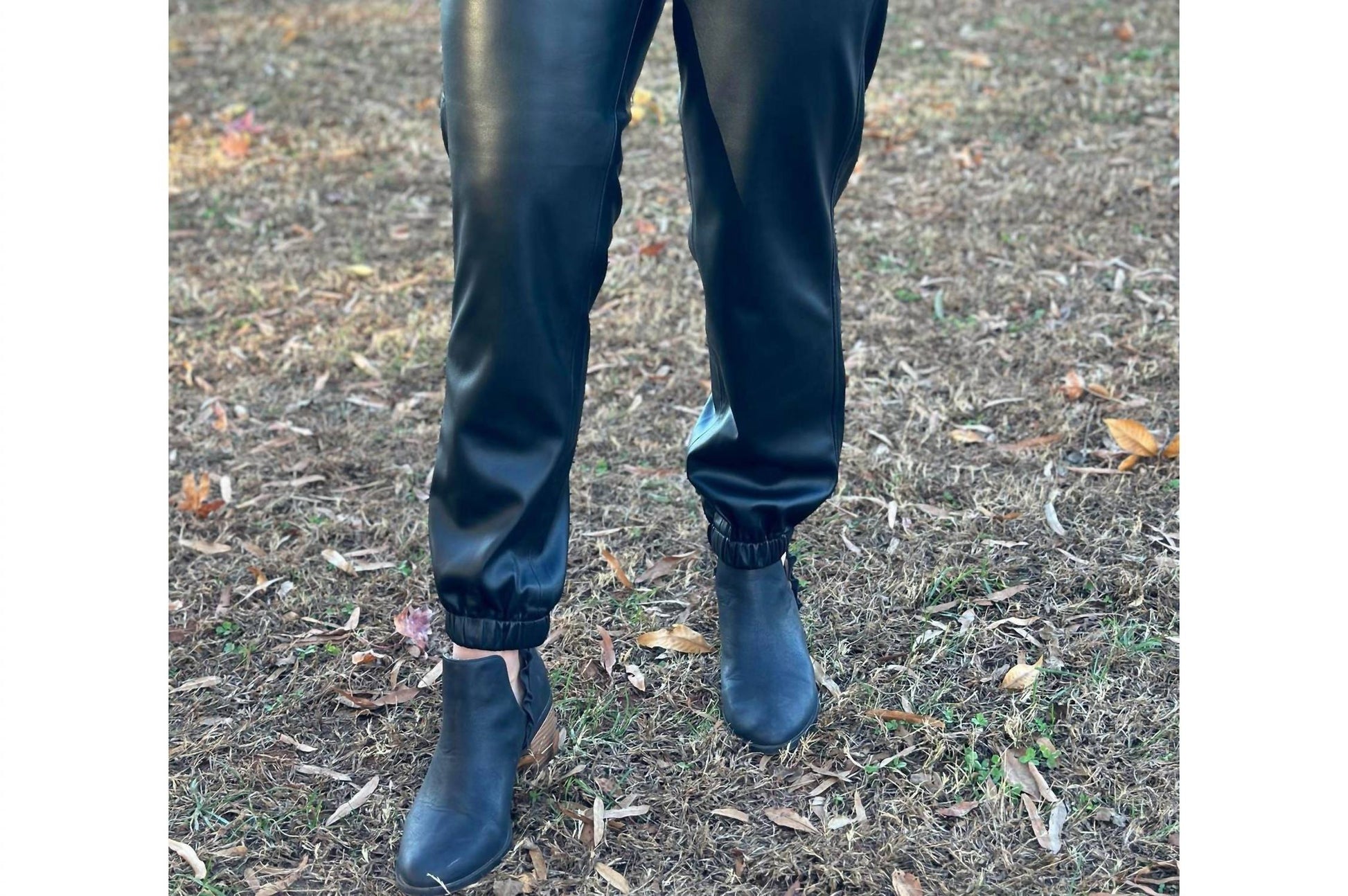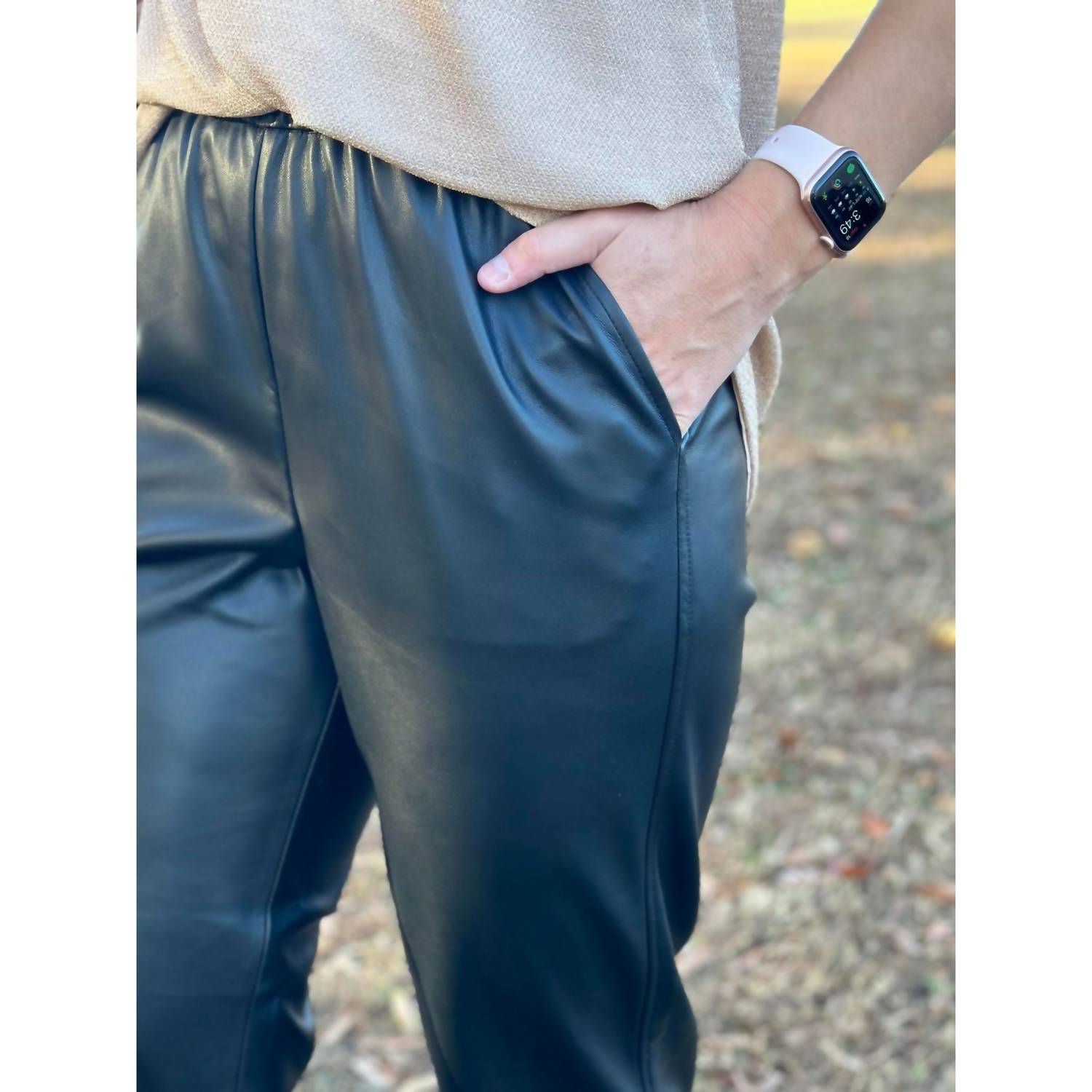 Elevate your style with the Z Supply Lenora Faux Leather Jogger, a chic addition to any wardrobe. Crafted from 100% Polyester, this black jogger features a relaxed fit with a tapered leg style and an easy pull-on closure for ultimate comfort. The inseam is uniform across all sizes at 28", with waist sizes ranging from 27" to 34" and hip measurements from 40" to 47". Designed for effortless maintenance, simply wipe clean with a damp cloth and air dry; avoid bleaching, ironing, or dry cleaning.