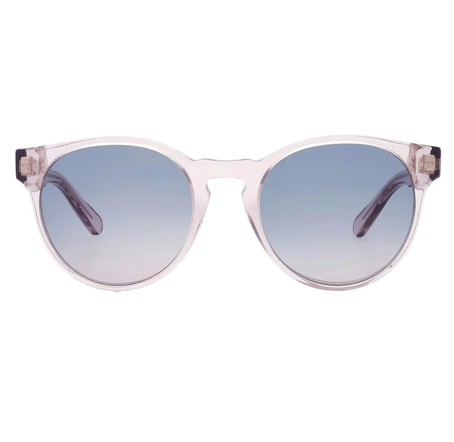 Elevate your eyewear game with the Women's SF1068S Sunglasses from Salvatore Ferragamo, adding a touch of elegance to any outfit. Crafted in Italy, these sunglasses feature a crystal nude acetate frame and round-oval shape for a timeless look. Their lenses boast a stunning blue/pink double-gradient effect, offering 100% UV protection to keep your eyes safe and stylish. Size specifications of 52-20-140 ensure a comfortable fit, making these sunglasses a perfect blend of fashion and function.