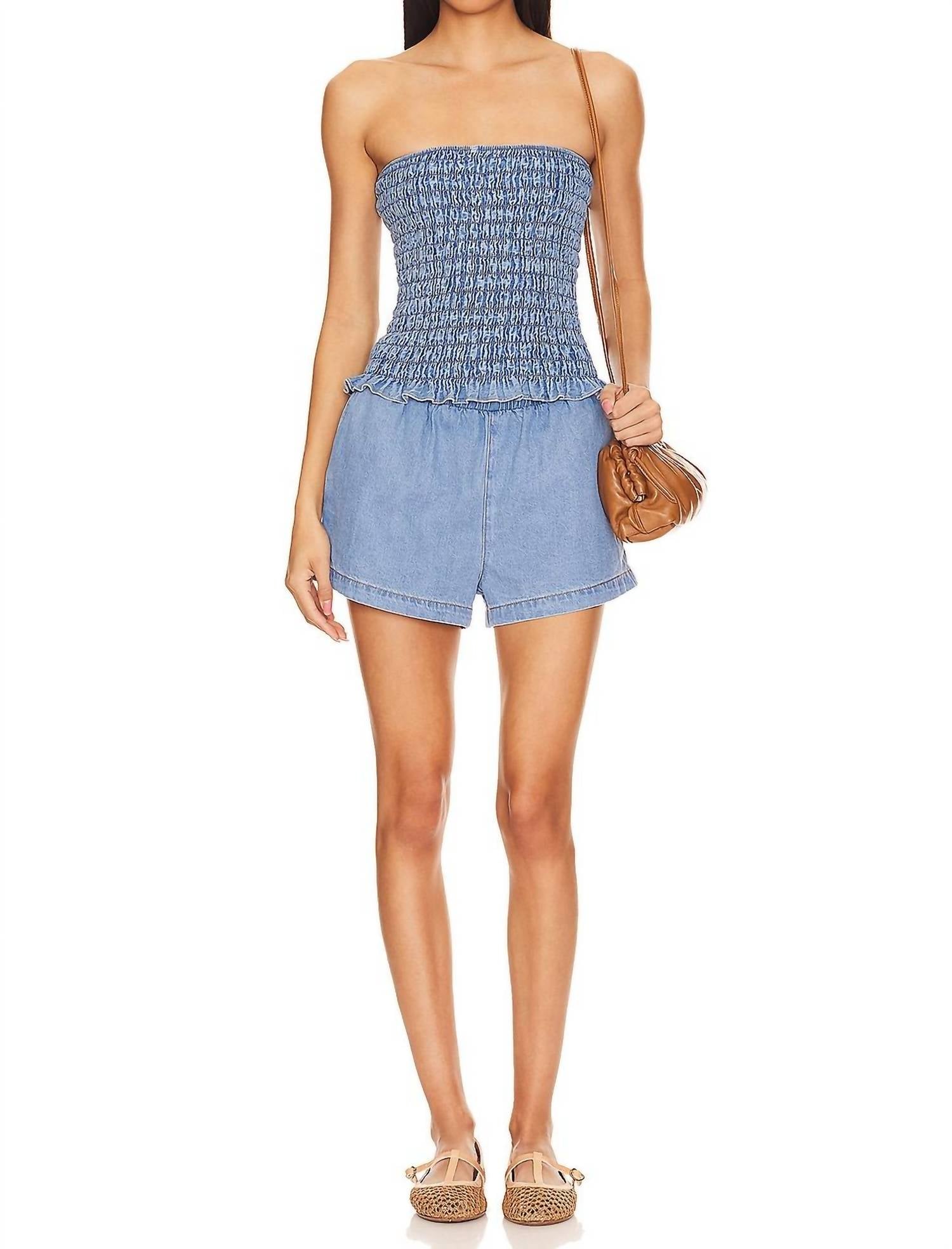 Fit to perfection, we love these high-waist shorts and you will too. Meet the Jo Chambray Short by LNA, a staple high-waisted piece in a solid faded blue perfect for your spring wardrobe. Crafted from 100% cotton, these lightweight denim shorts come equipped with an elastic waistband and convenient side seam pockets for ultimate comfort and style. Made in China, they feature a pull-on closure and are approximately 32cm long. Easy to care for, simply machine wash and lay flat to dry.