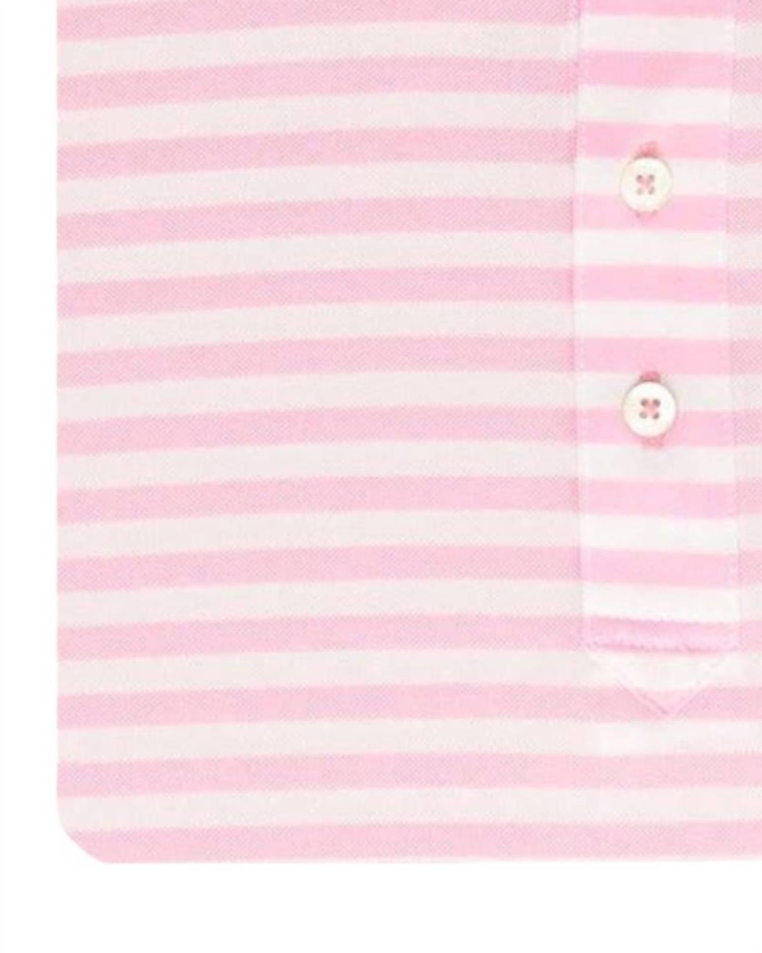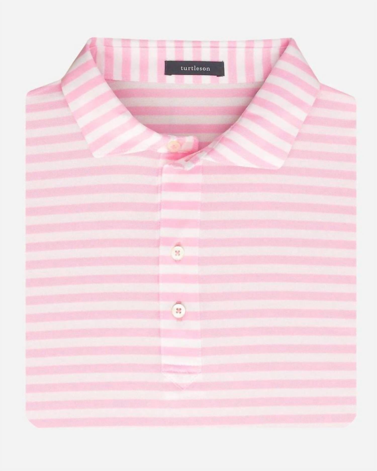Introducing the Men's Elliott Short Sleeve Polo by Turtleson, an ideal choice for a summer vacation wardrobe. Crafted from 94% Polyester and 6% Spandex, this polo offers four-way stretch and a lightweight feel with moisture-wicking, quick-dry, and odor-resistant properties. It features a stylish two-color bar stripe in orchid and a classic 3-button placket closure with logo-engraved mother-of-pearl buttons for a refined touch. For best care, machine wash cold with like colors and tumble dry low, avoiding ironing and dry cleaning.