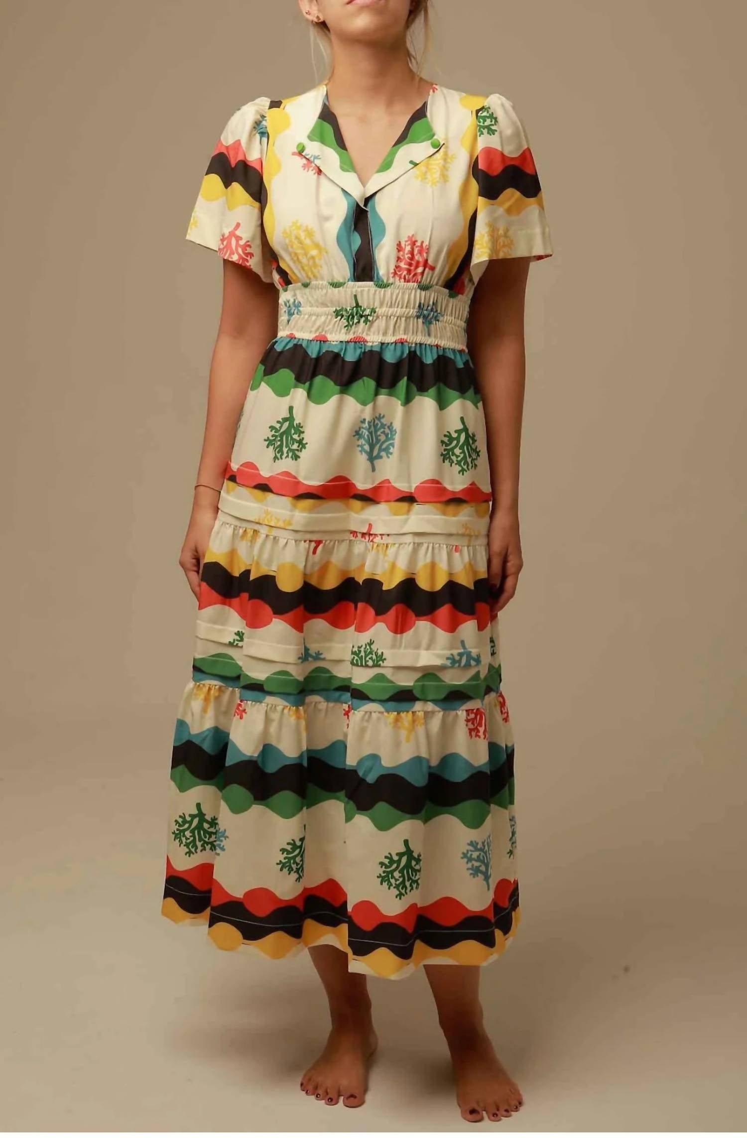 Elevate your wardrobe with the Teresa Dress by Lavi, a stunning maxi ensemble in a striking green hue. Designed with short sleeves and an empire waist silhouette, this dress boasts an elegant argyle pattern for a classic touch. Featuring a V-neckline, it's crafted for easy wear with a pull-on closure. Care instructions recommend a gentle hand wash and line drying to maintain its exquisite look.