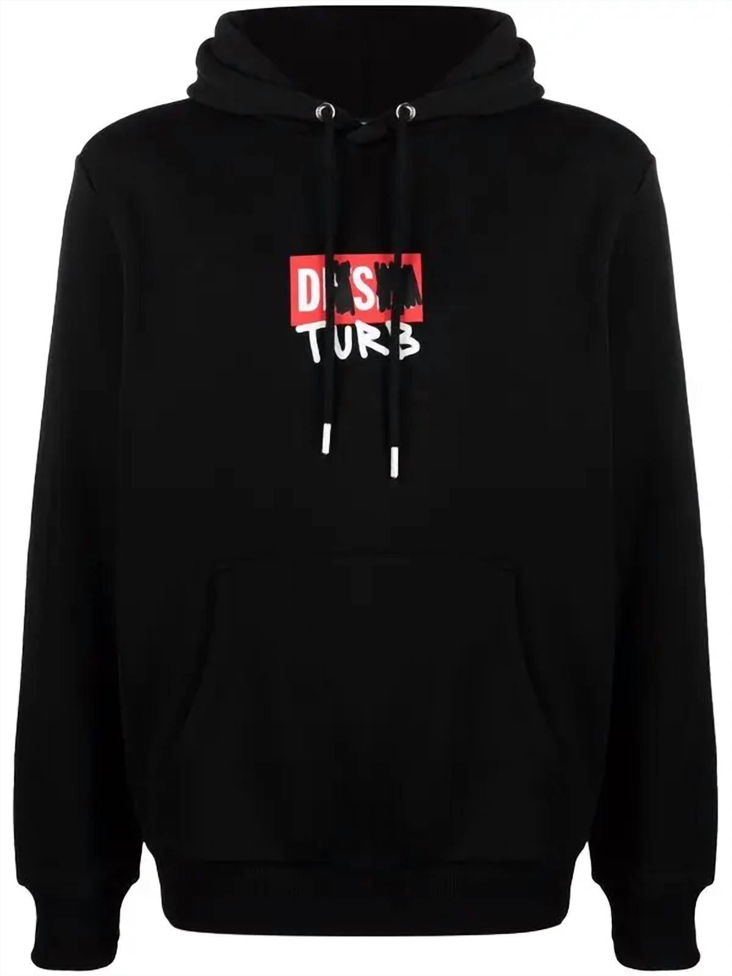 Standout piece in black with a striking logo print. Crafted from a blend of organic cotton. Features long sleeves, a drawstring hood, elasticated cuffs, and an elasticated hem. Designed for comfort and style. Includes convenient pockets and comes with a pull-on closure. Machine wash.