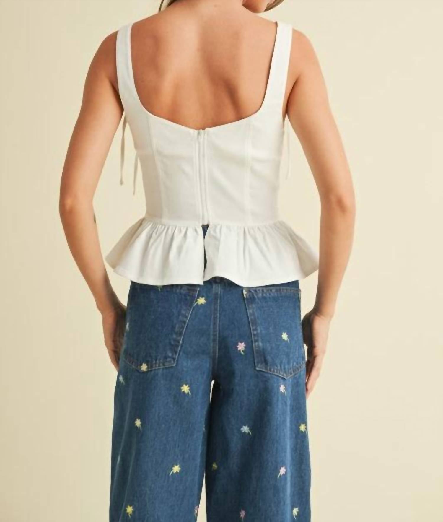 Throw this on with your favorite blazer for a more polished look. Introducing the Bow Tie Peplum Top by Klesis, a chic addition to your summer wardrobe. This sleeveless top in solid white features a sweetheart neckline and tie closure, adding a playful yet minimalist flair. Perfectly suited for holiday parties, this versatile piece combines elegance with a touch of femininity. Its flattering peplum silhouette ensures you look effortlessly stylish for any occasion.