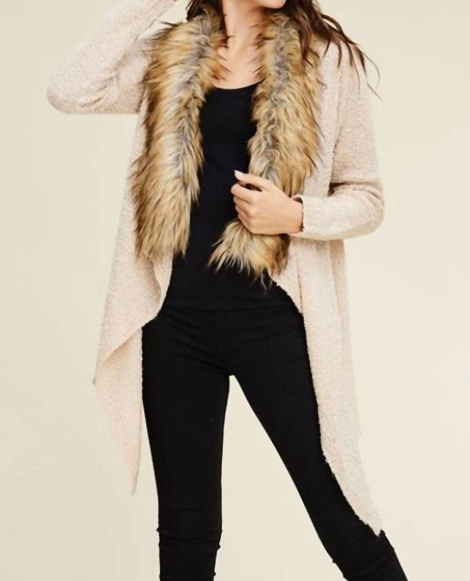 Staccato - Faux Fur Trim Waterfall Sweater