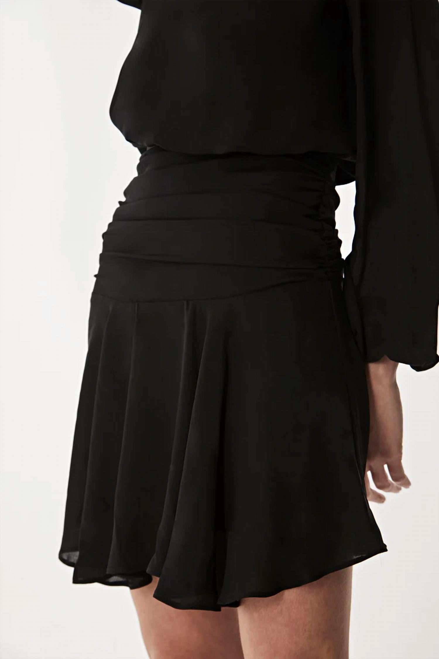 The perfect mini dress for those warmer months. Elevate your wardrobe with the Maison Dress by Krisa, a chic A-line mini in timeless black. This solid-colored dress boasts long sleeves and a classic turtleneck, leading to a shirred skirt that flows from its fitted hips for a playful touch. With a convenient pull-on closure, it's perfect for effortless styling. Made for the modern woman, this piece pairs beautifully with strappy sandals for a fashionable statement.