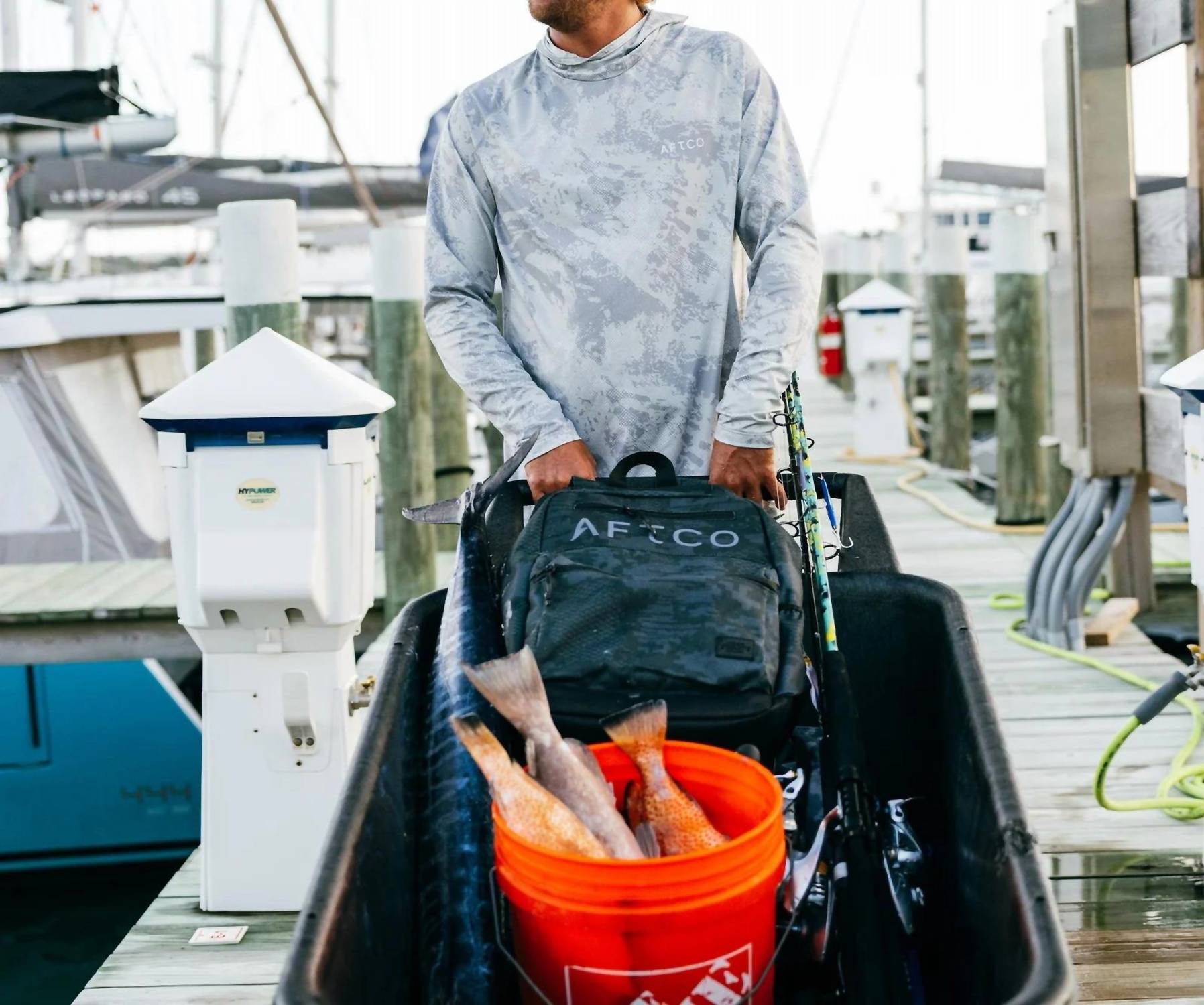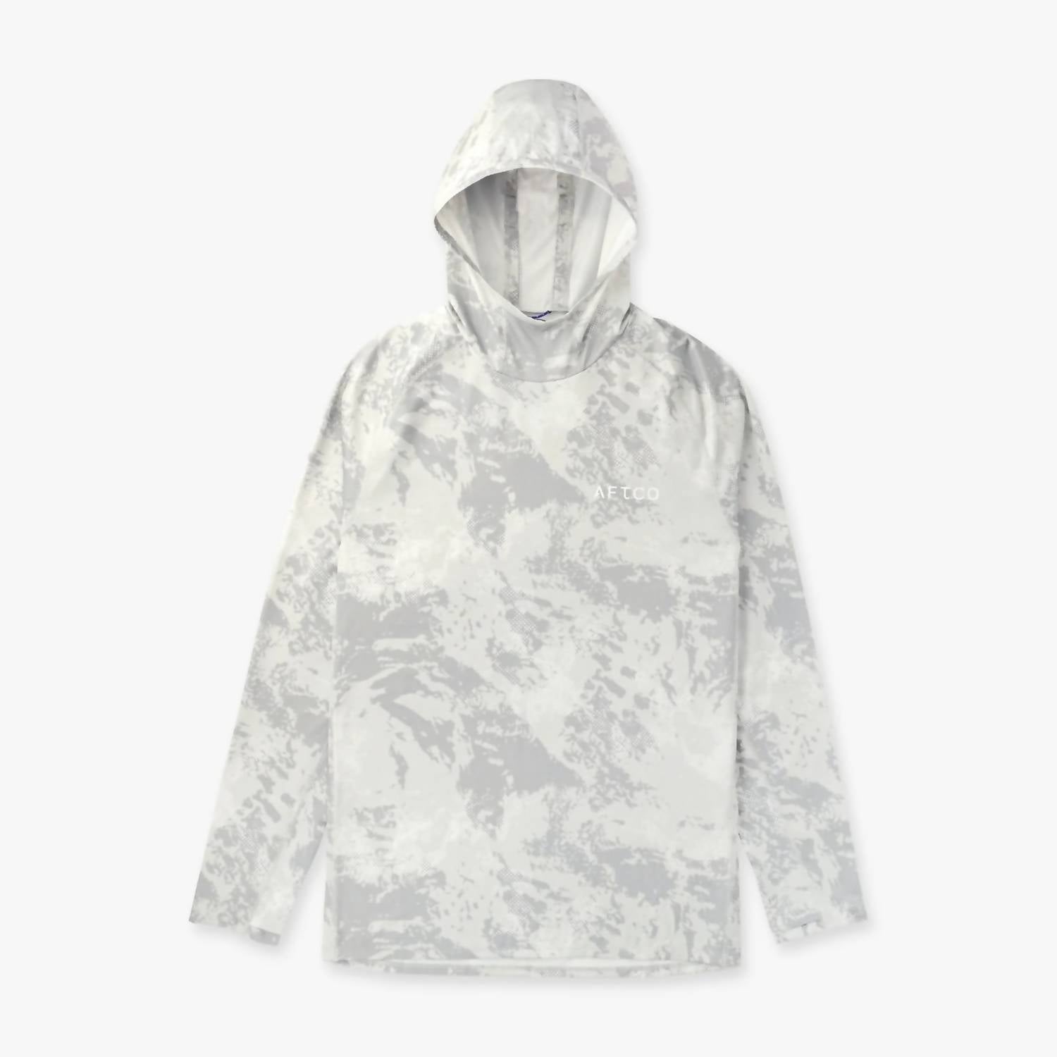 Elevate your outdoor performance with the Adapt Phase Change Performance Hoodie in Silver Storm Camo by AFTCO. This long-sleeve hooded design is crafted from a dobby knit featuring 84% recycled polyester and 16% spandex, showcasing the innovative Adapt "Phase Change" technology for dynamic temperature regulation. Closure is a convenient pull-on style, perfect for active pursuits. Care is a breeze with machine wash and tumble dry instructions. Enjoy added benefits like UPF 50 sun protection, moisture-wicking properties, and a SpeedVent™ hood for high-speed activities.