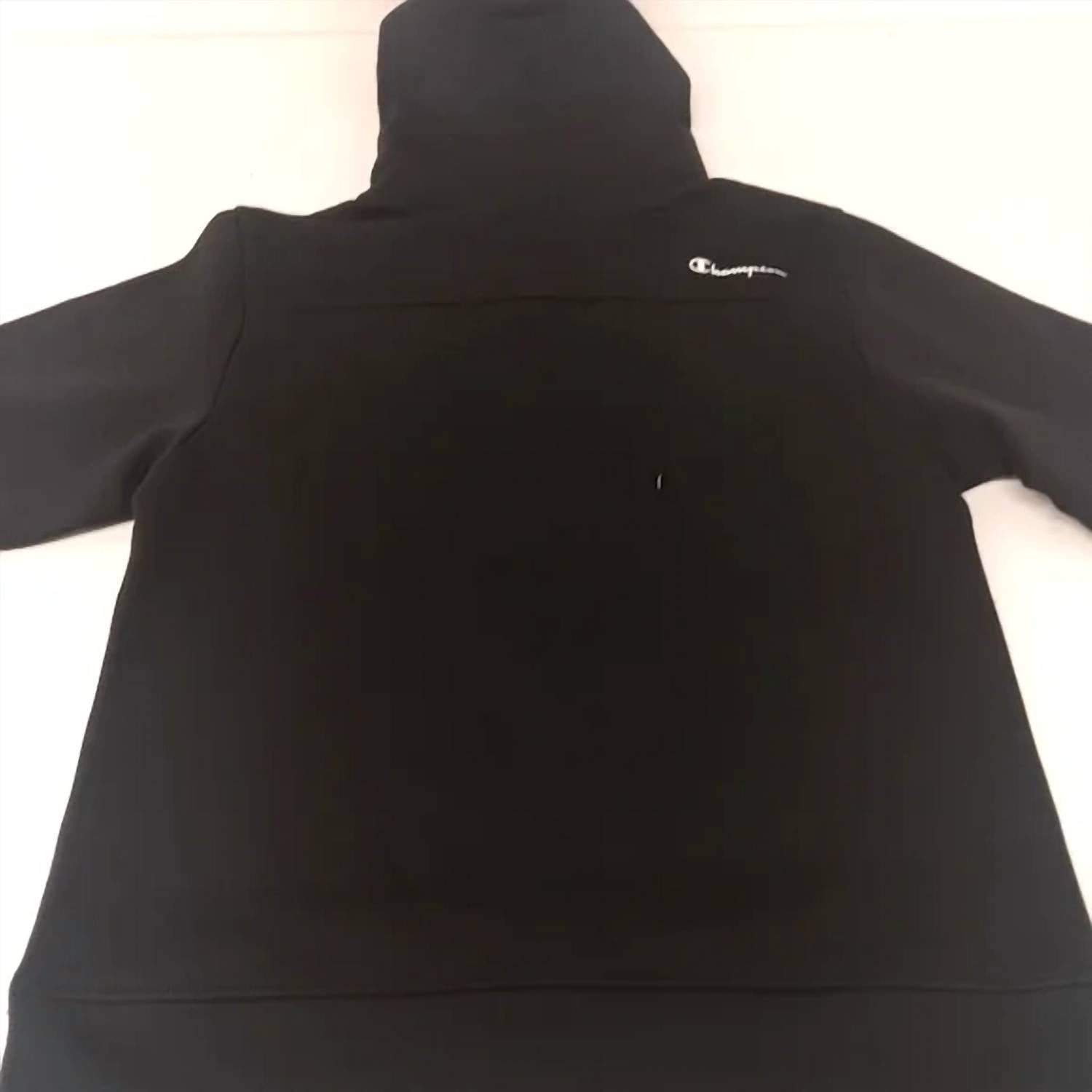 Elevate your casual wardrobe with the Men's Super Fleece Hoodie With Face Mask by Champion, an innovative blend of function and style. This black hoodie features long sleeves and a convenient pull-on closure, crafted from 80% Cotton and 20% Polyester for ultimate comfort. Its thoughtful design includes a built-in face mask, kangaroo pocket, and accessory pocket, all enhanced by a graphic pattern. Care is effortless with machine wash cold instructions.