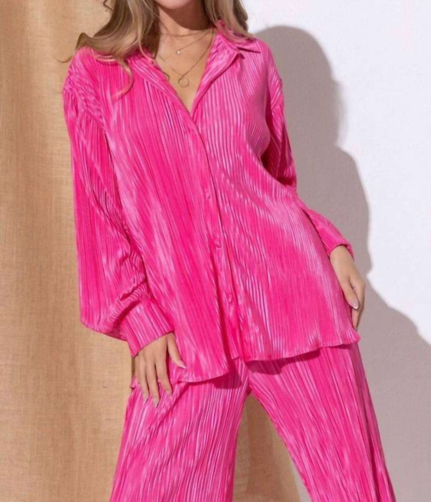 Blue B - Accordion Mini Pleat Long Blouse And Pant Set