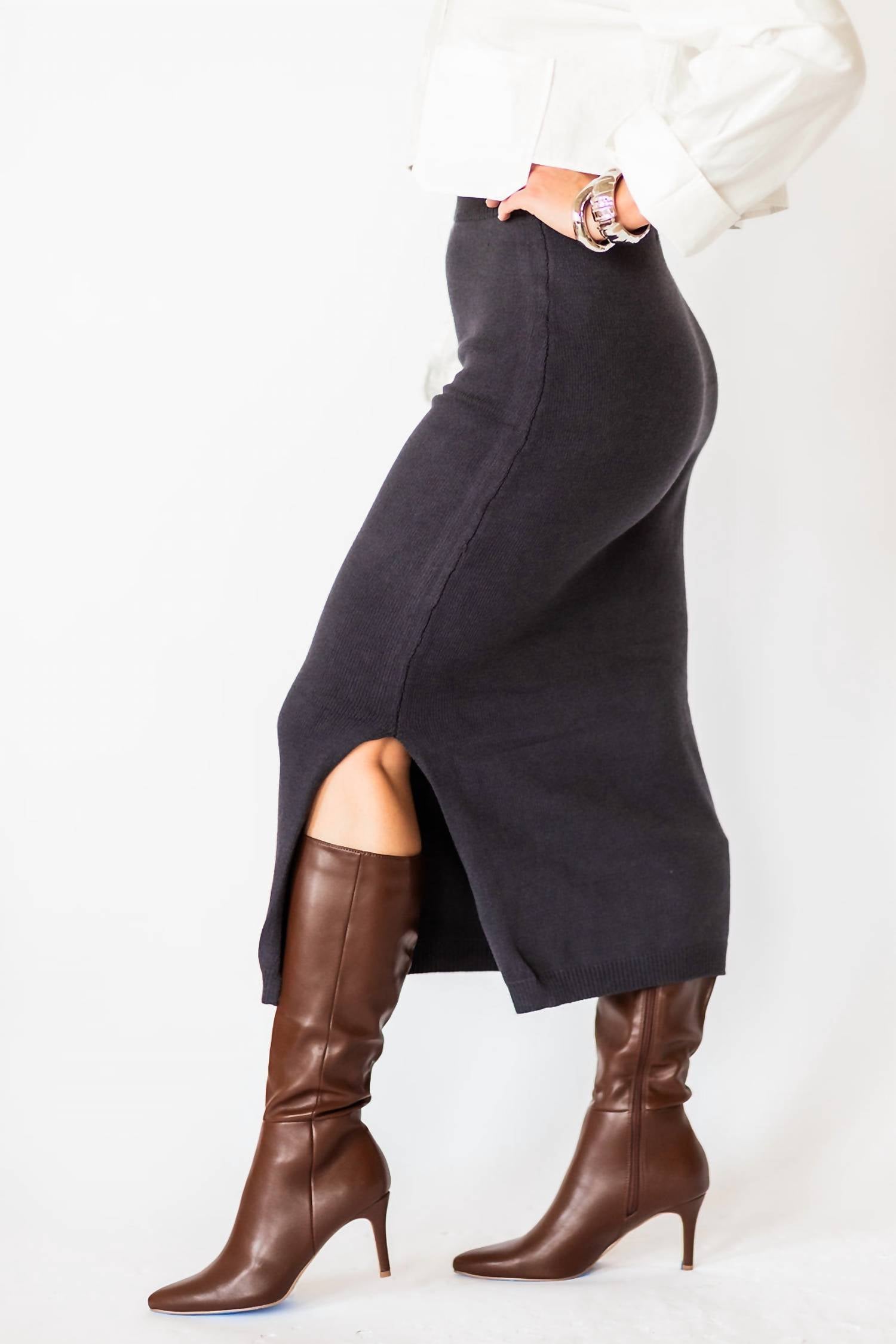Elevate your wardrobe with the Siarah Knit Pencil Skirt from Falcon Park. This chic skirt in a versatile black hue is crafted from a luxurious blend of 50% rayon, 28% polyester, and 22% nylon. It features a stylish pencil silhouette complete with a trendy side slit for added flair. The pull-on closure makes it effortlessly easy to wear, making it a must-have piece that pairs perfectly with any top, from a matching sweater to a classic button-down.