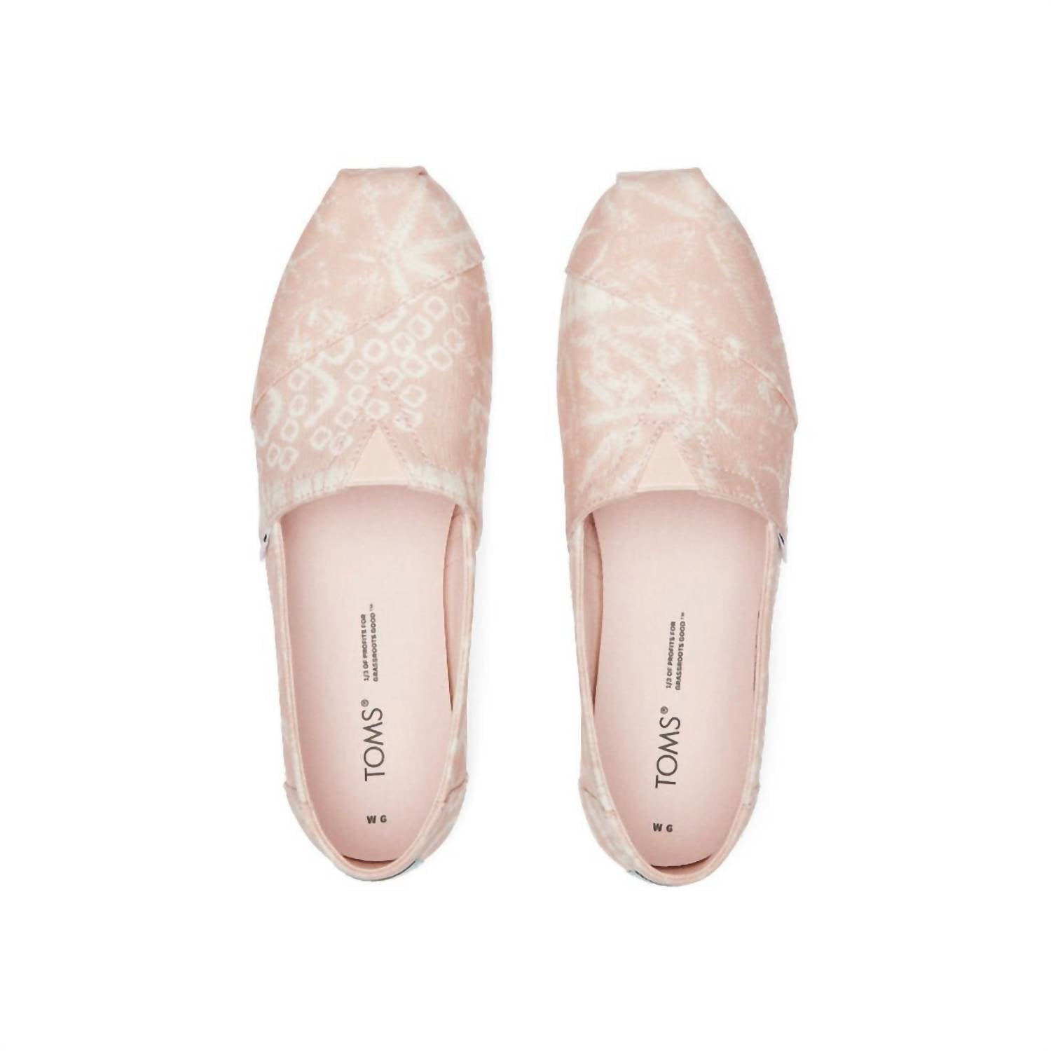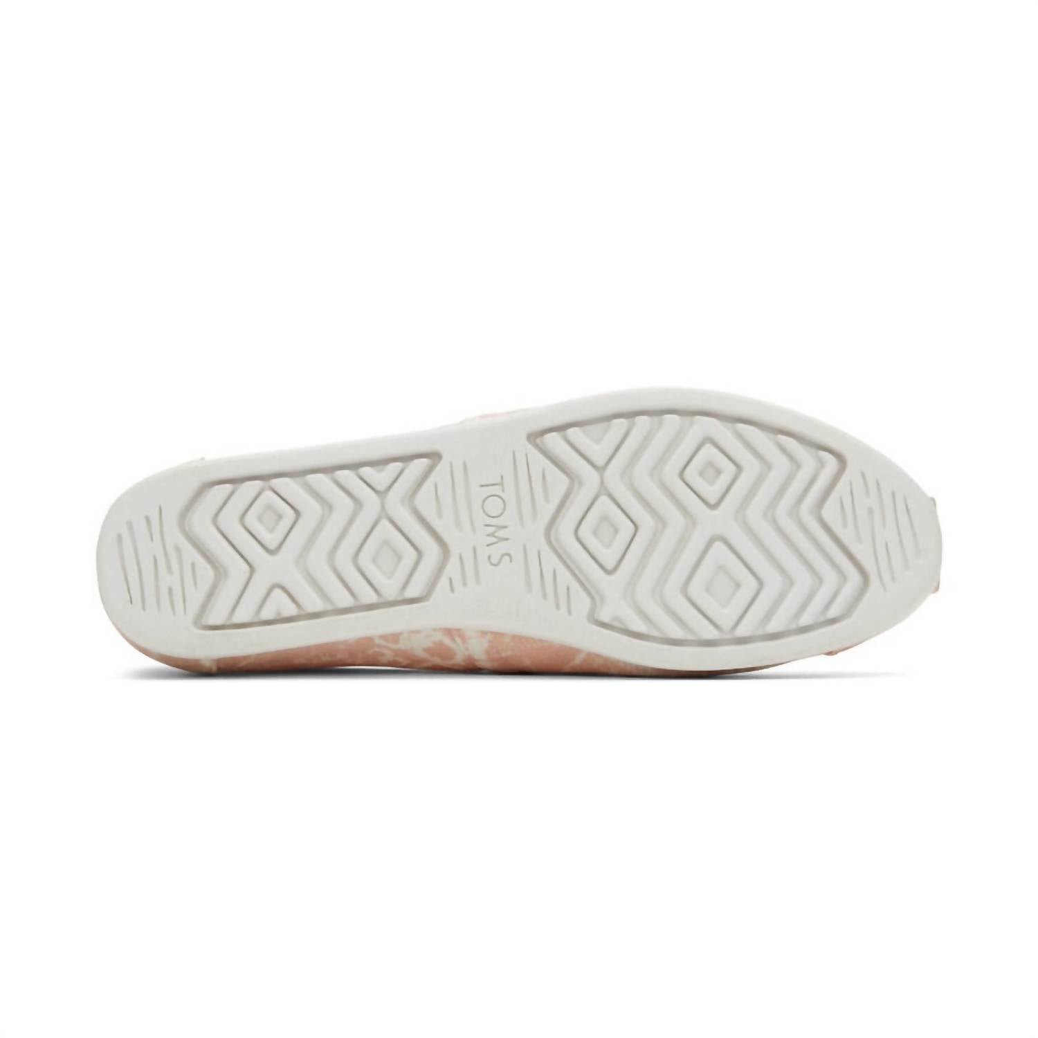 Get your daily steps in with these adorable sneakers. Step into comfort with the Women Alpargata Print Sneakers by TOMS, crafted in a charming Cloudy Pink hue. These sneakers feature classic Alpargata textile uppers and an elastic gore for an easy fit, complemented by a round toe and flat heel design. The Canvas footbed and Cloudboundâ„¢ technology ensure a comfortable fit with improved traction, while selected styles incorporate Eco-EVA for an eco-friendly touch. Ideal for women seeking both style and sustainability.