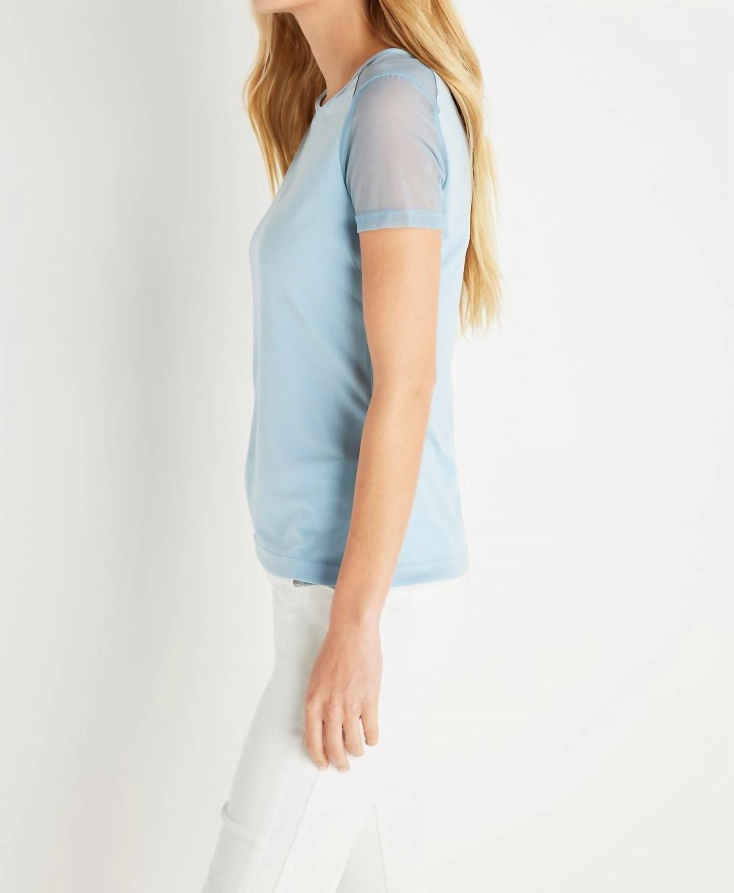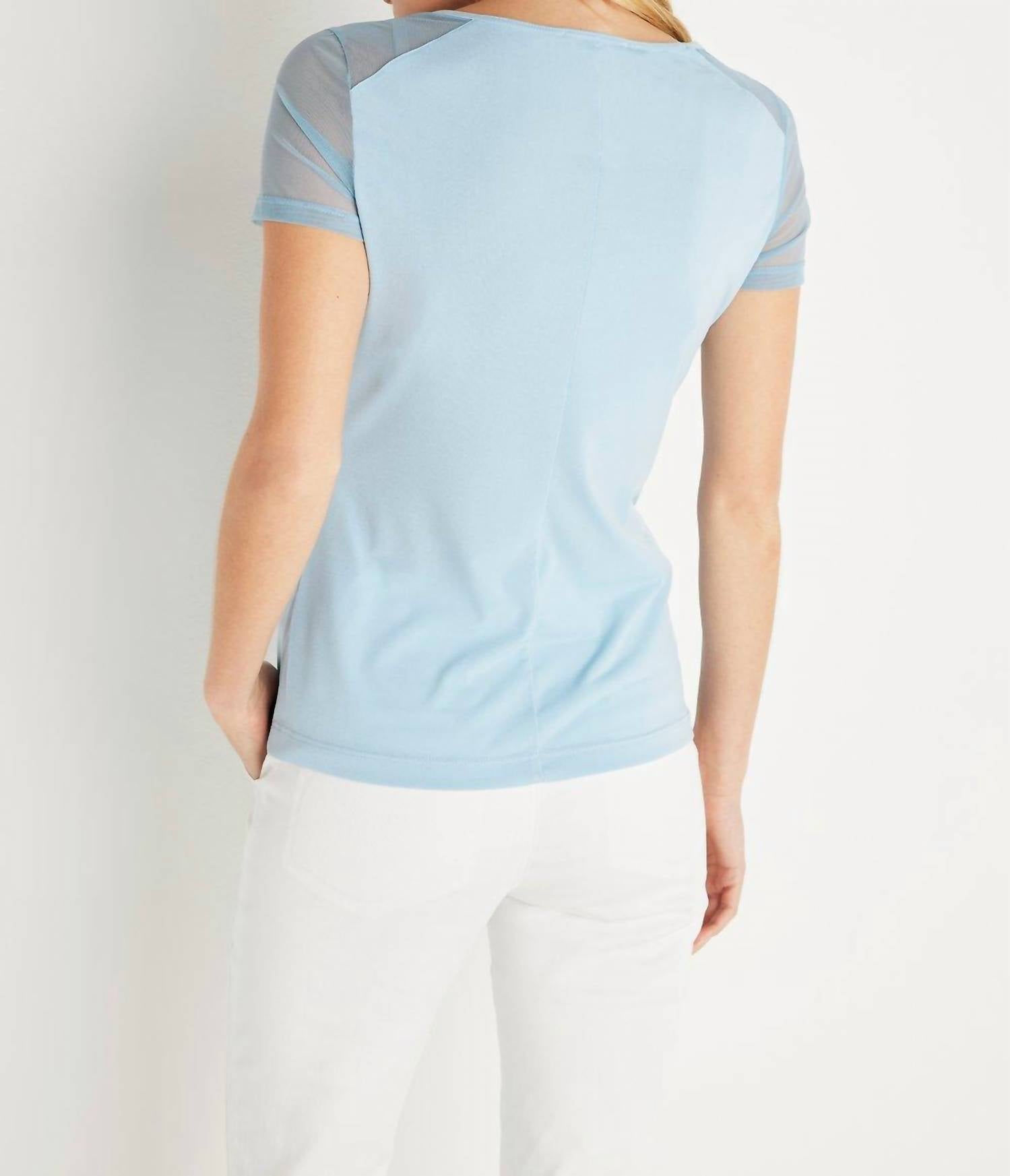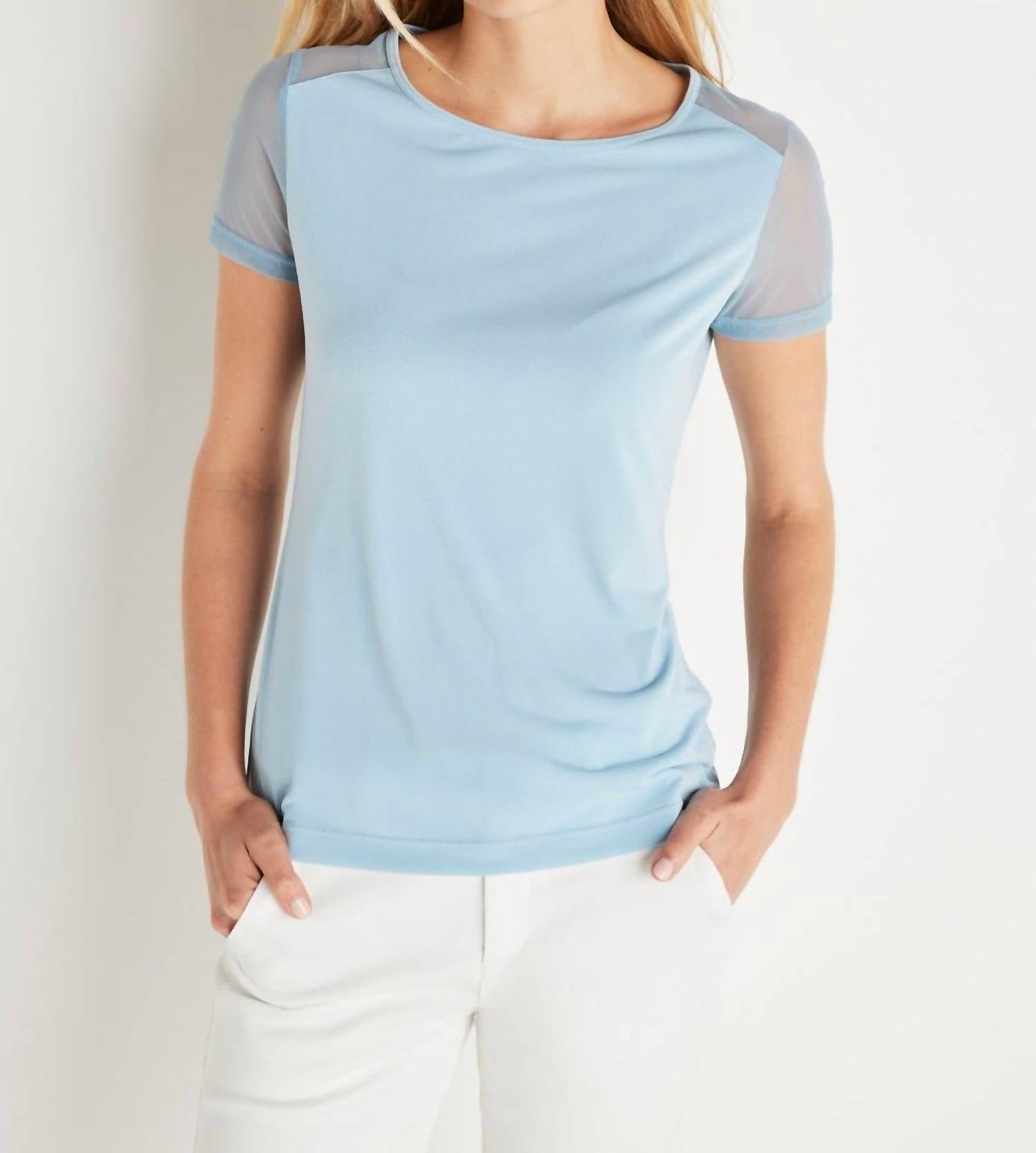 Signature luxe jersey with airy mesh sleeves and shoulder panels. Jersey: 96% Polyester 4% Elastane. Mesh: 94% Polyester 6% Elastane. Made in Italy.