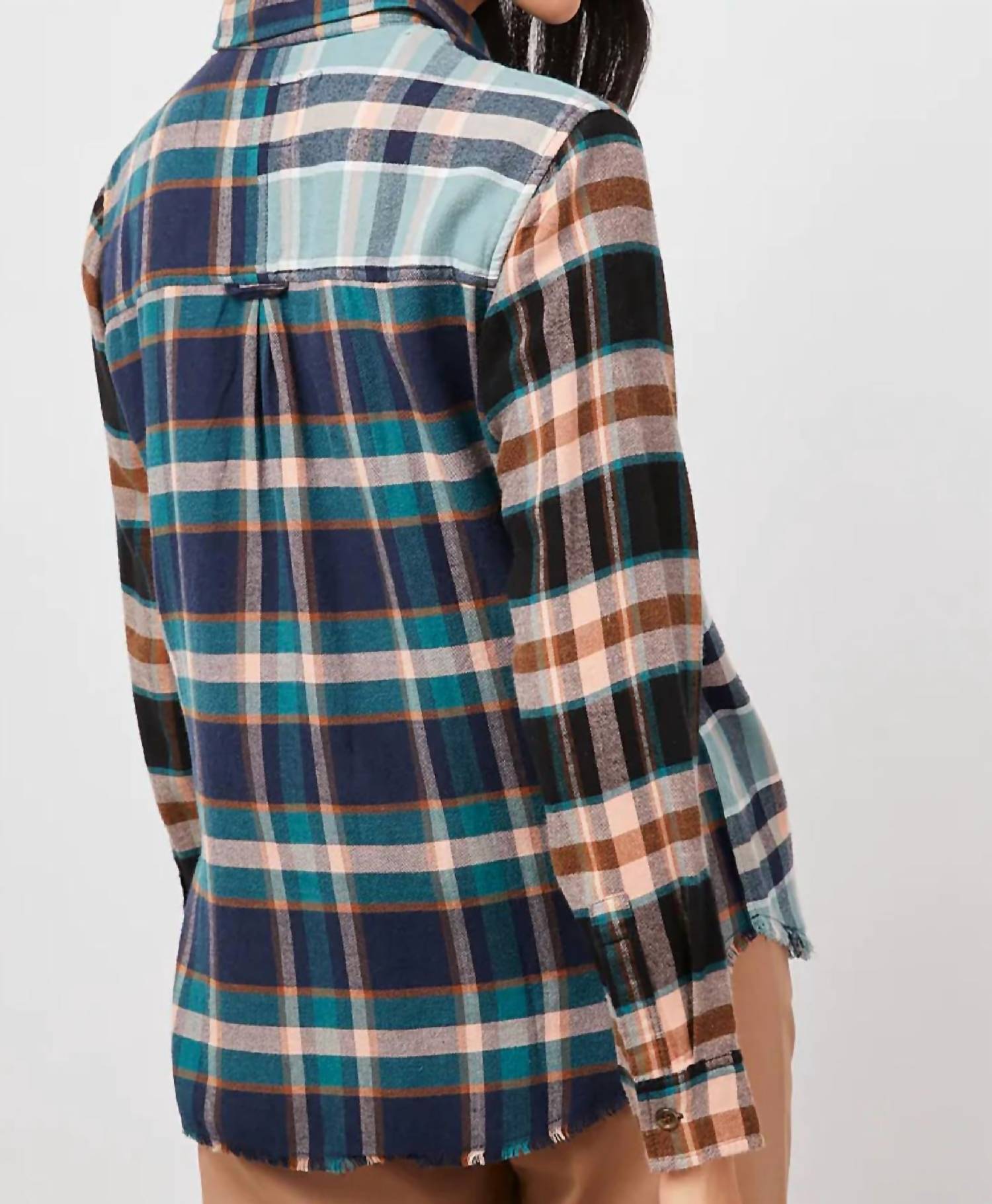 The classic RAILS long sleeve plaid buttondown shirt with a unique patchwork twist. This style is a year-round comfort classic made from a super cozy, vintage flannel fabric featuring a loose twill weave. This style features two patch pockets with button closure at chest and a raw hem. 60% Rayon | 40% Cotton. Imported. Recommend ordering true to size. Front Body Length: 27"