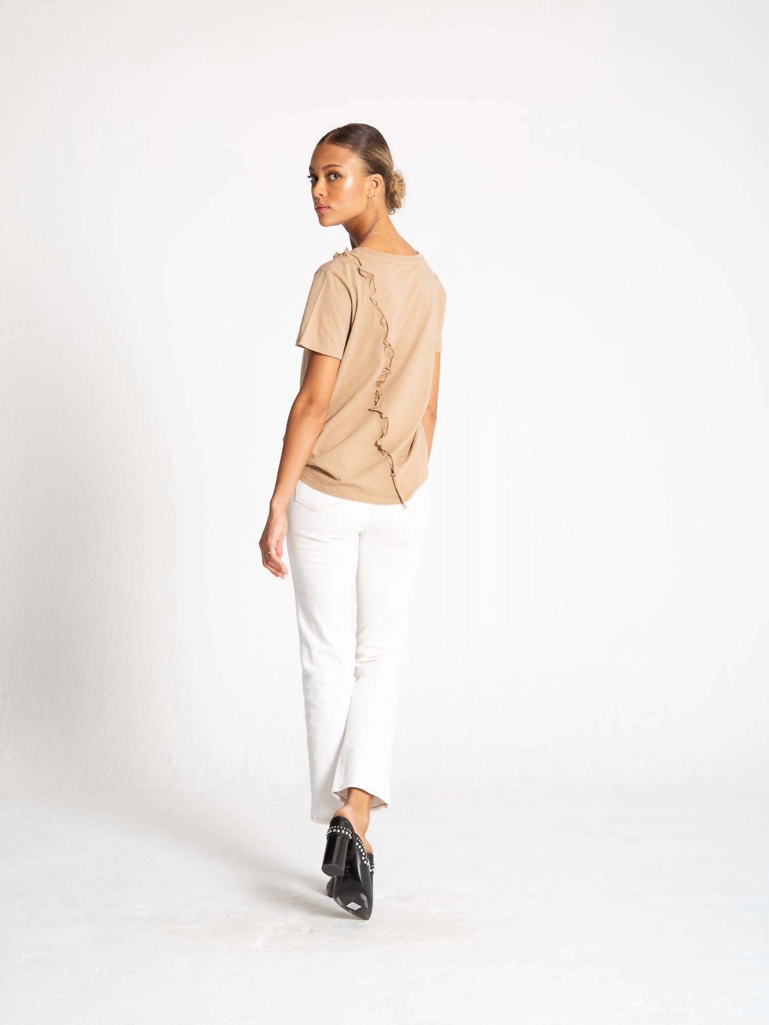 Bring a unique upgrade to your basics collection with this n:philanthropy™ Sol Tee crafted from a soft jersey fabrication with ruffled seams throughout.Short-sleeve tee features a crew neckline, straight hem, and a metal charm at the left side.Machine wash cold and dry flat.Imported.