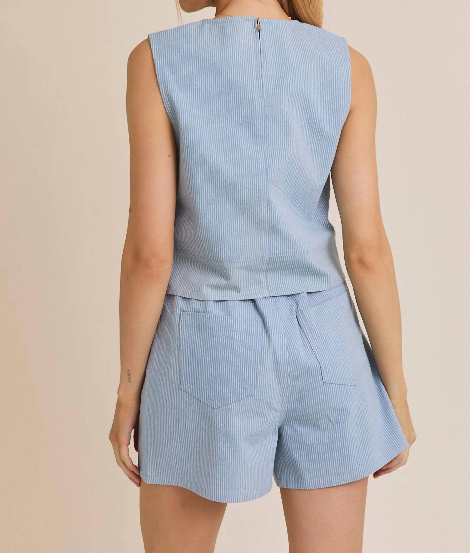 Fit, fabric and functionality. This tank top checks all the boxes. Embrace summer style with the Chelsey Striped Denim Sleeveless Tank by GILLI, a light denim and white piece perfect for sunny days. This women's tank features a sleeveless design and a crewneck for cool comfort, crafted from a cotton, polyester and spandex blend that includes polyester and spandex for a slight stretch. Closure: A discreet back zipper ensures ease of wear.