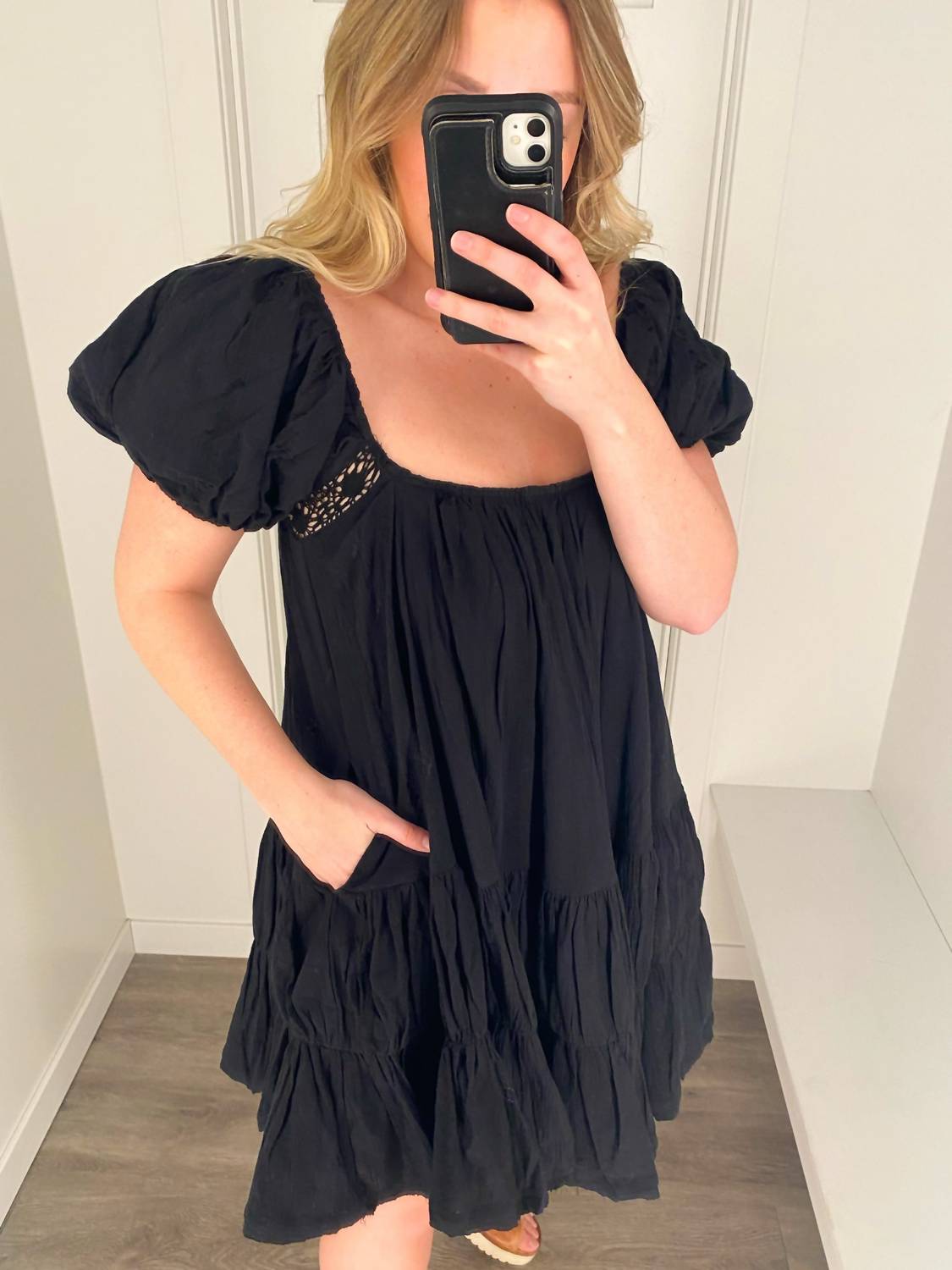 The perfect mini dress for those warmer months. Introducing the Gisella Ruffle Dress by By Together, an enchanting mini-length piece in classic black designed for vacation wear. Featuring a scoopneck and short sleeves, this dress is crafted from Woven Cotton Tencel Gauze, complete with intricate embroidery and a ruffled silhouette. Seamlessly pull it on thanks to its convenient design, and enjoy the elegance of its solid, monochrome pattern. Ideal for spring occasions, this women's A-line dress balances comfort and style beautifully.