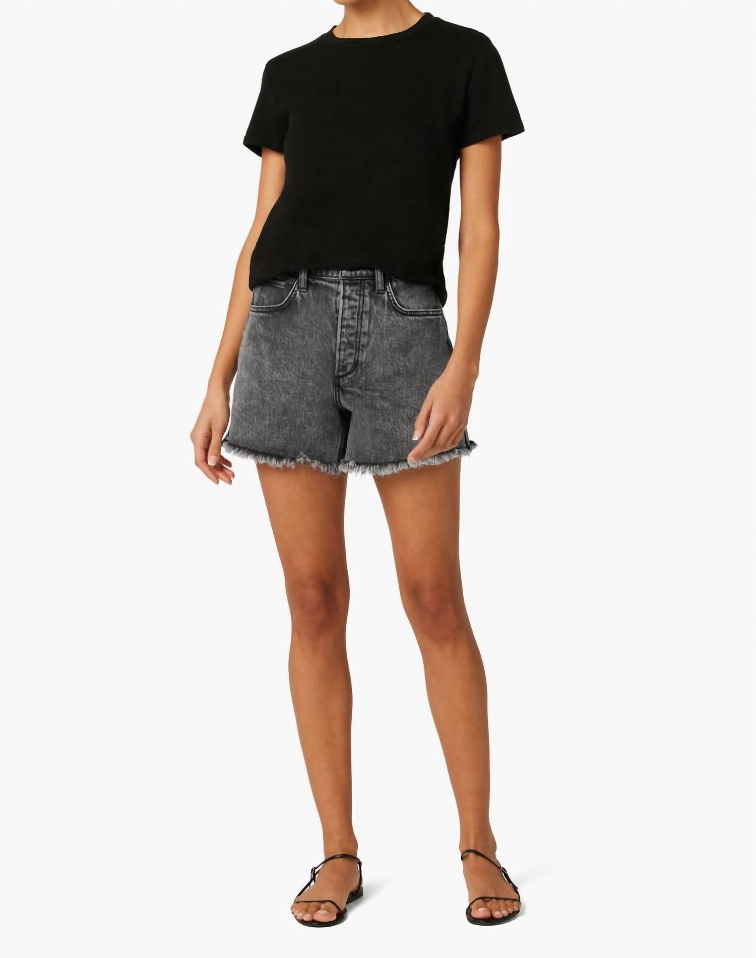 Jean shorts so versatile, you can literally wear them with anything. Introducing the Alex High Rise Shorts by Joe's Jeans, a perfect blend of vintage and modern style in a faded dark-grey 'Felt Cute' shade. Crafted from comfortable cotton, these shorts feature a relaxed fit and exquisite distressing that embraces a chic aesthetic. They come with a practical button closure and convenient pockets, ensuring both style and functionality. Care: Machine wash.