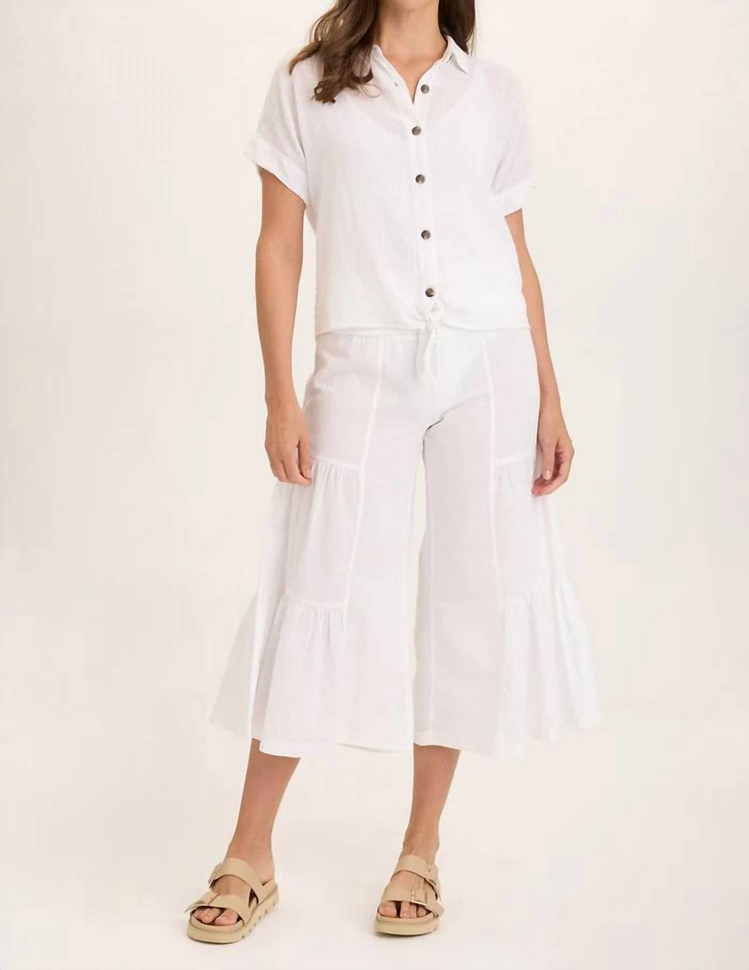 Embrace summer, perfect choice for a relaxed, boho chic vibe. Featuring a 4" foldover jersey waistband and stylish tiered side panels, boast a comfortable mid-rise fit and wide-leg style. Crafted from a 75% Linen and 25% Cotton blend, with a 23" inseam and elegant pull-on closure. Preshrunk and machine washable for easy summer wear. Provide a seamless balance of comfort and style with their relaxed fitting design.
