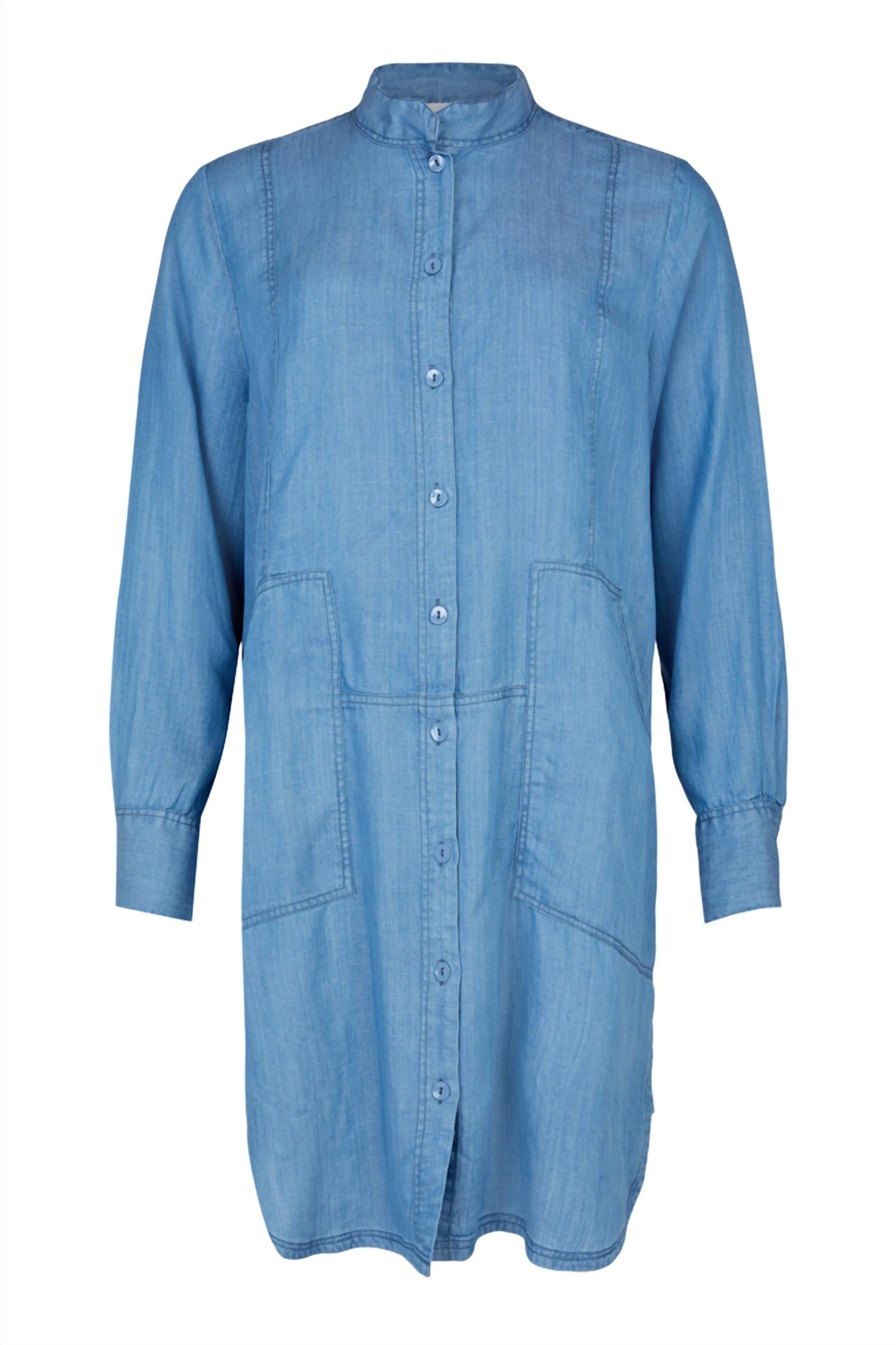 The perfect length dress does exist. Introducing the Women's Button Down Dress by NOEN, a minimalist piece ideal for vacation settings. Crafted with luxurious 100% Tencel, this sheath silhouette dress offers a soft denim feel and features long sleeves, pockets, and cuffs. It comes in a flattering midi length, designed with a mockneck for a chic touch. Closure type: Button closure. Care: Machine washable and tumble dry. Origin: Imported.