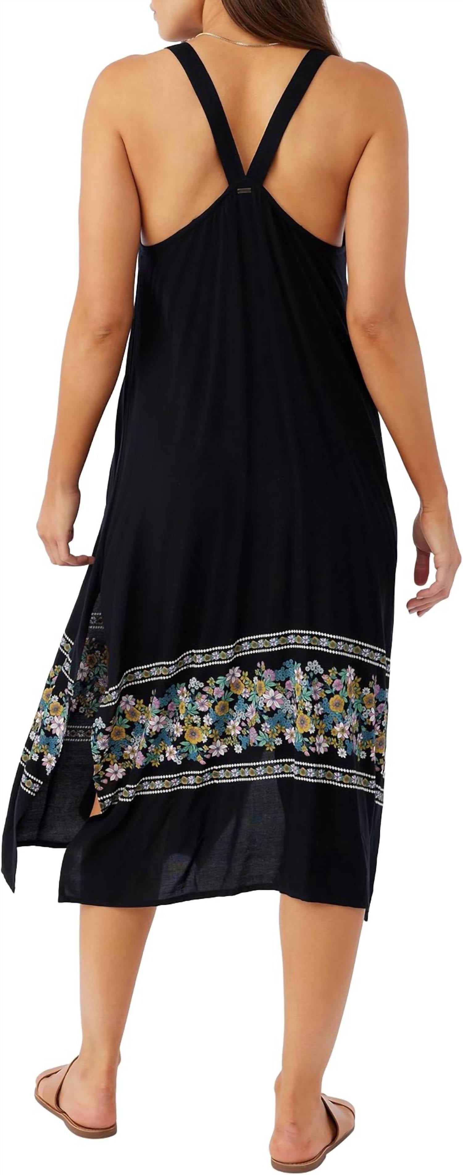 You're go-to coverup for pool parties, beach days and long weekends. The Miranda Border Cover-Up Dress by O'NEILL is an elegant choice for a summer beach day. This women's woven cover-up dress in classic black features a straight neckline and captivating print detail. Crafted from 100% Viscose, it offers a comfortable wear at a midi length of 38 inches. For best care, hand wash and lay flat to dry.