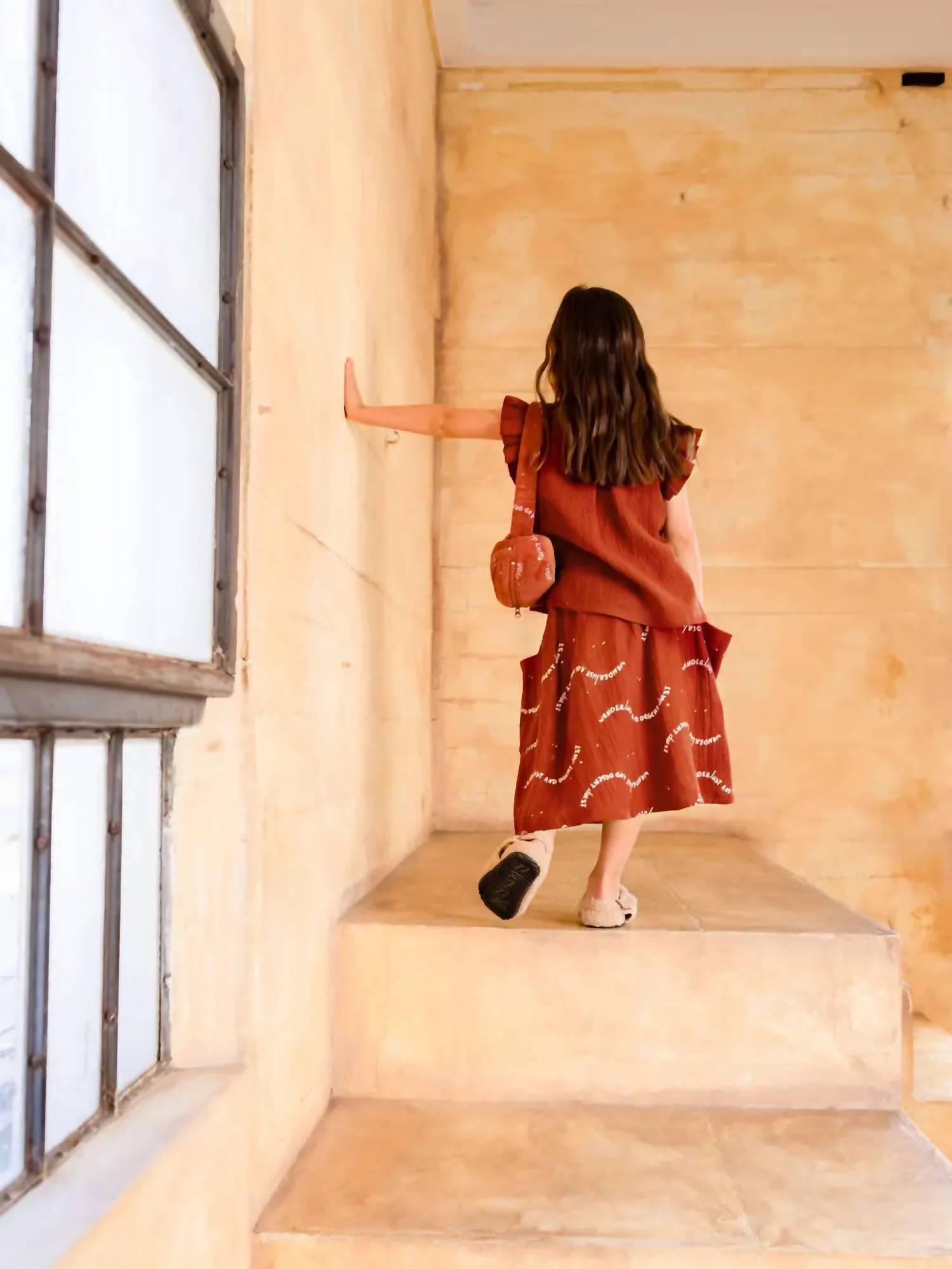 Boxy pleats sleeve and inverted pleat back make this top extra-special. Crew neck. Inner binding around hand opening. 100% cotton gauze. Machine wash and dry