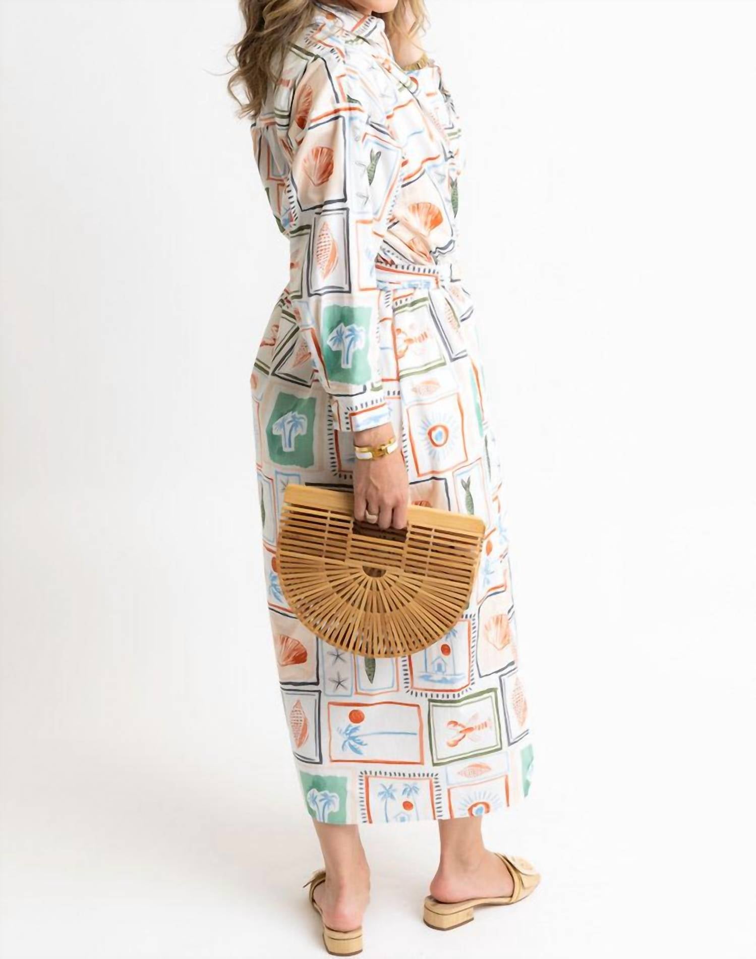 A maxi dress that is just as cute as it is comfortable. Experience effortless elegance with the Capri Coast Shirt Dress. This women's maxi dress features a classic shirt silhouette, complete with a collar and long sleeves, offering a sophisticated and refined look. Designed without pockets for a sleek, minimalist feel, it’s the perfect addition to any wardrobe that values timeless style.