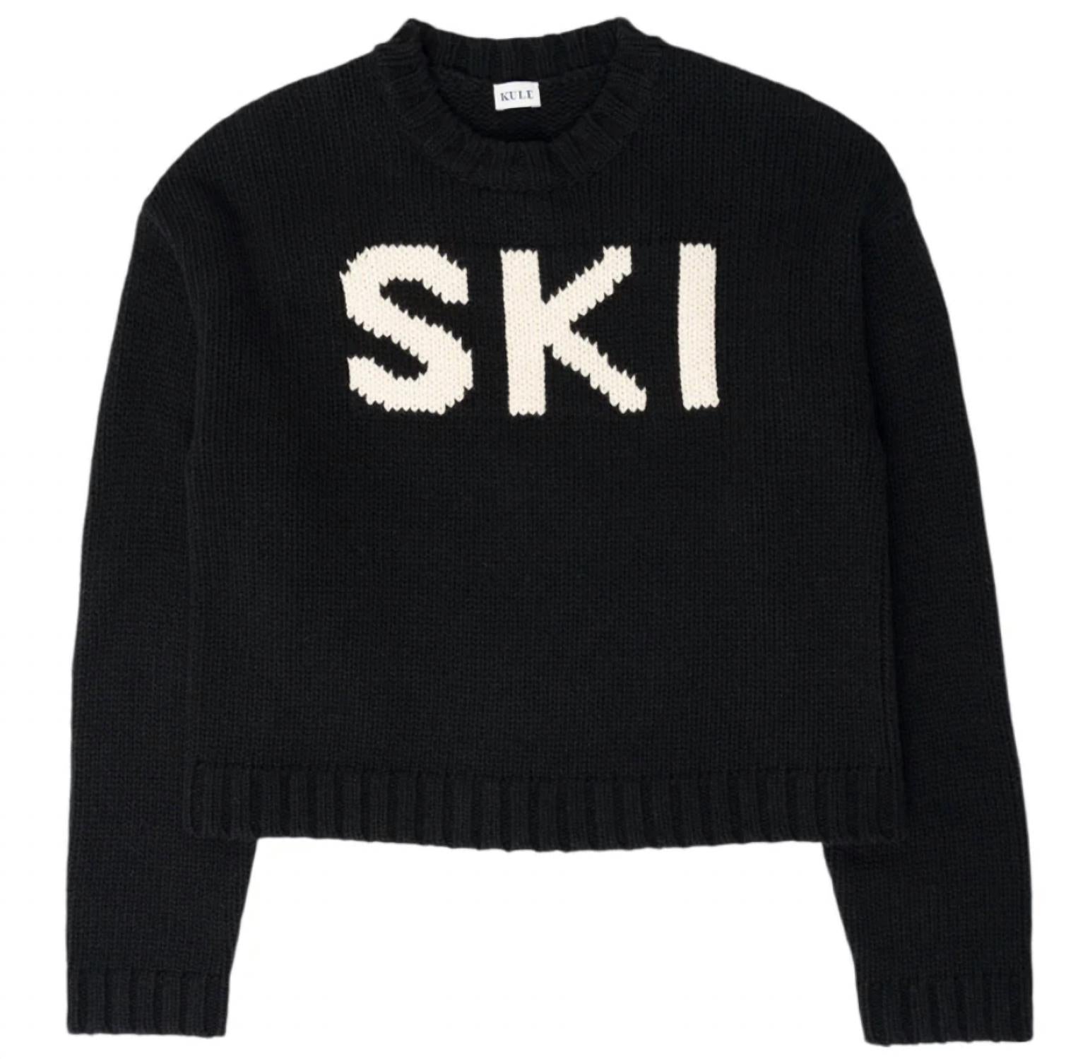 The ultimate go-to sweater, expertly crafted to provide the perfect combination of warmth and style. Its classic design and soft fabric make it a must-have addition to your wardrobe. Introducing the SKI Sweater by KULE, where style meets comfort in Black/Cream tones. This long sleeve crewneck sweater, crafted from a 55% Merino Wool and 45% Cotton blend, features a chunky knit and ribbed trim at the neck and cuffs. The intarsia graphic boldly emblazoned on the chest speaks to both alpine enthusiasts and style aficionados alike. With a pull-on closure, it's imported with care instructions for dry cleaning only.