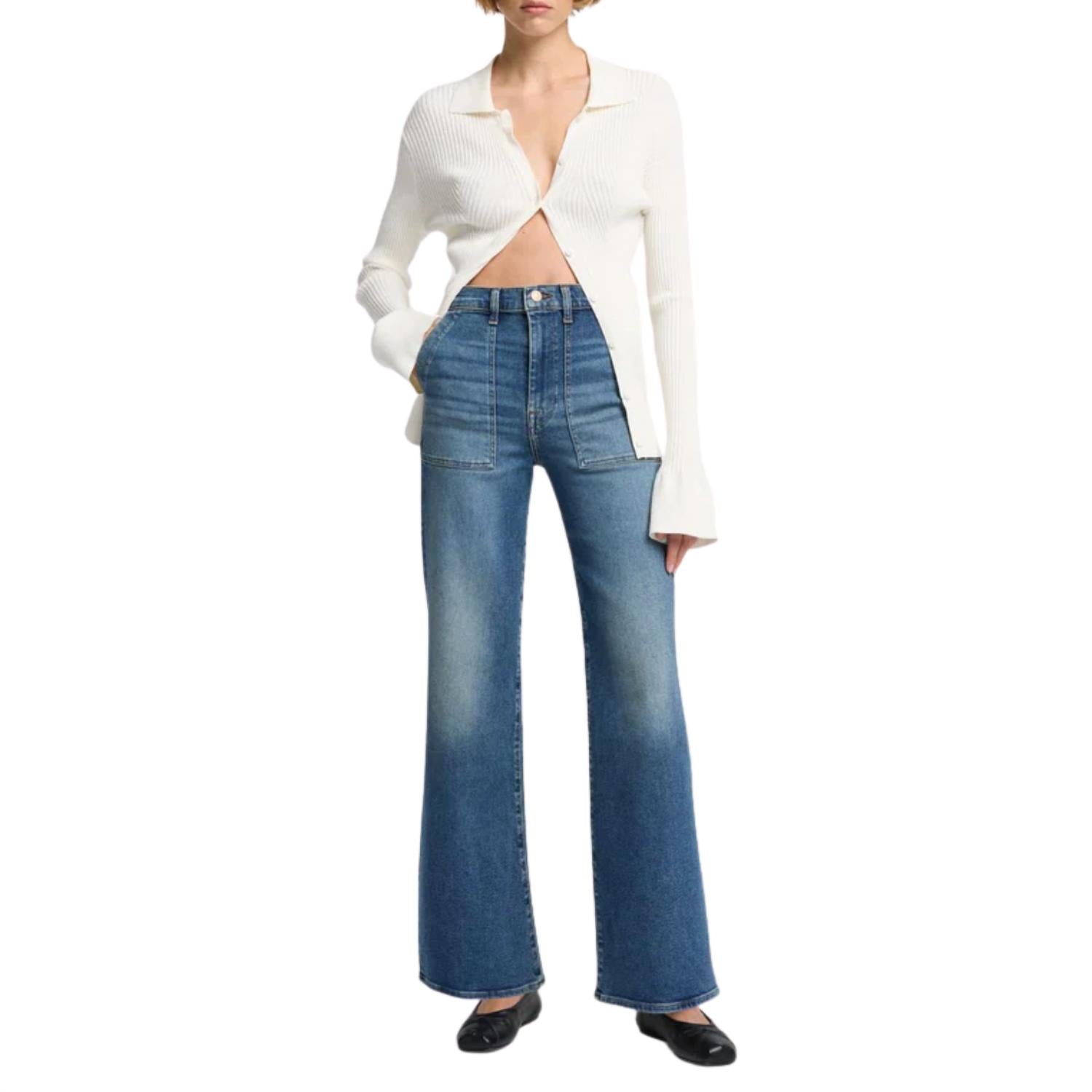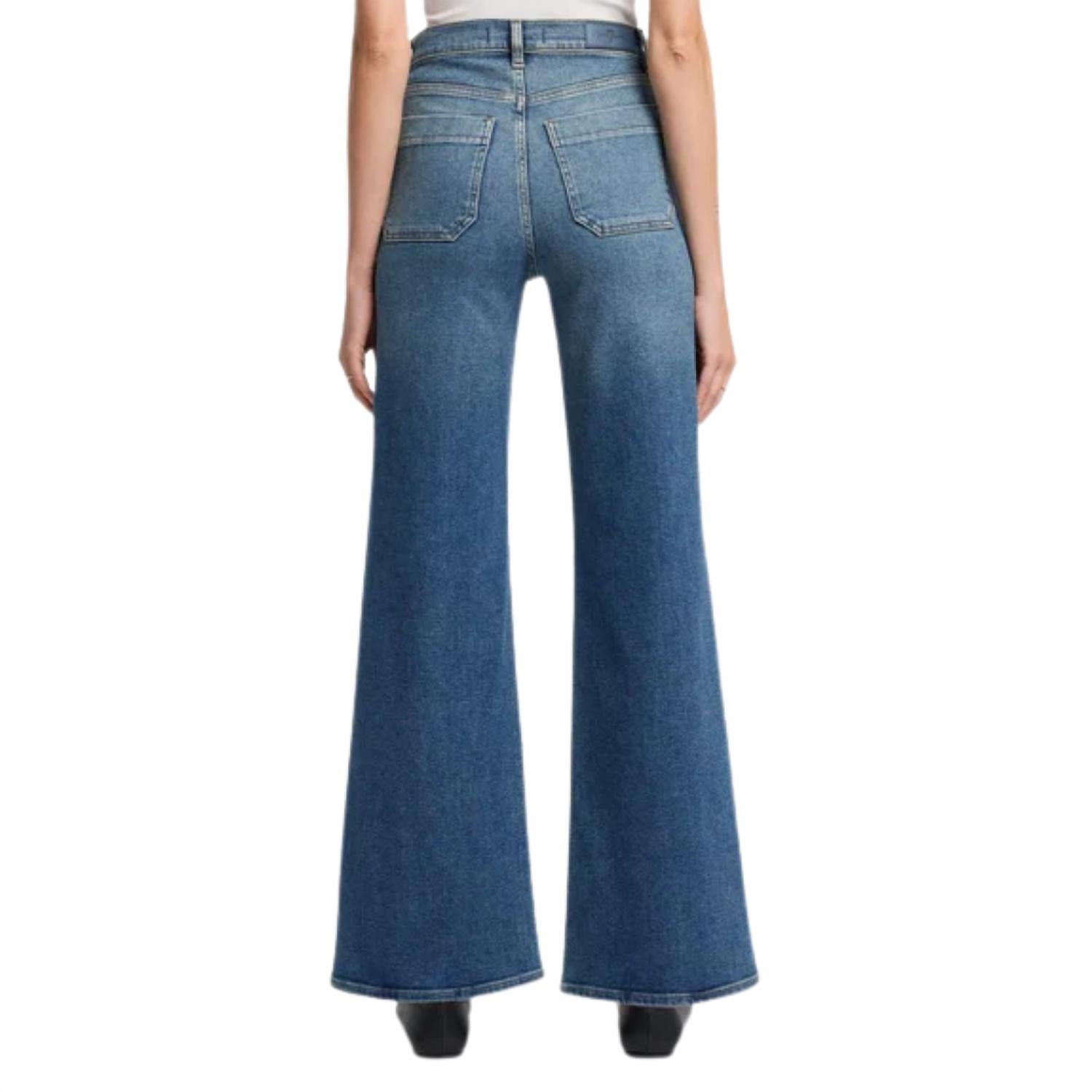 Pair these wide leg jeans with mules, slides or your favorite strappy sandals. Seven For All Mankind Luxe Vintage Ultra High Rise Jo Cotton, Lyocell, Elastane in Sea Level Wide Leg Jeans Ultra High Rise Patch Pockets Vintage Denim with Stretch Mid-blue Wash Full Length Based on Size 27 Rise: 10.7" Inseam: 32" Leg Opening: 23.5" True to Size Machine Wash Cold, Lay Flat to Dry
