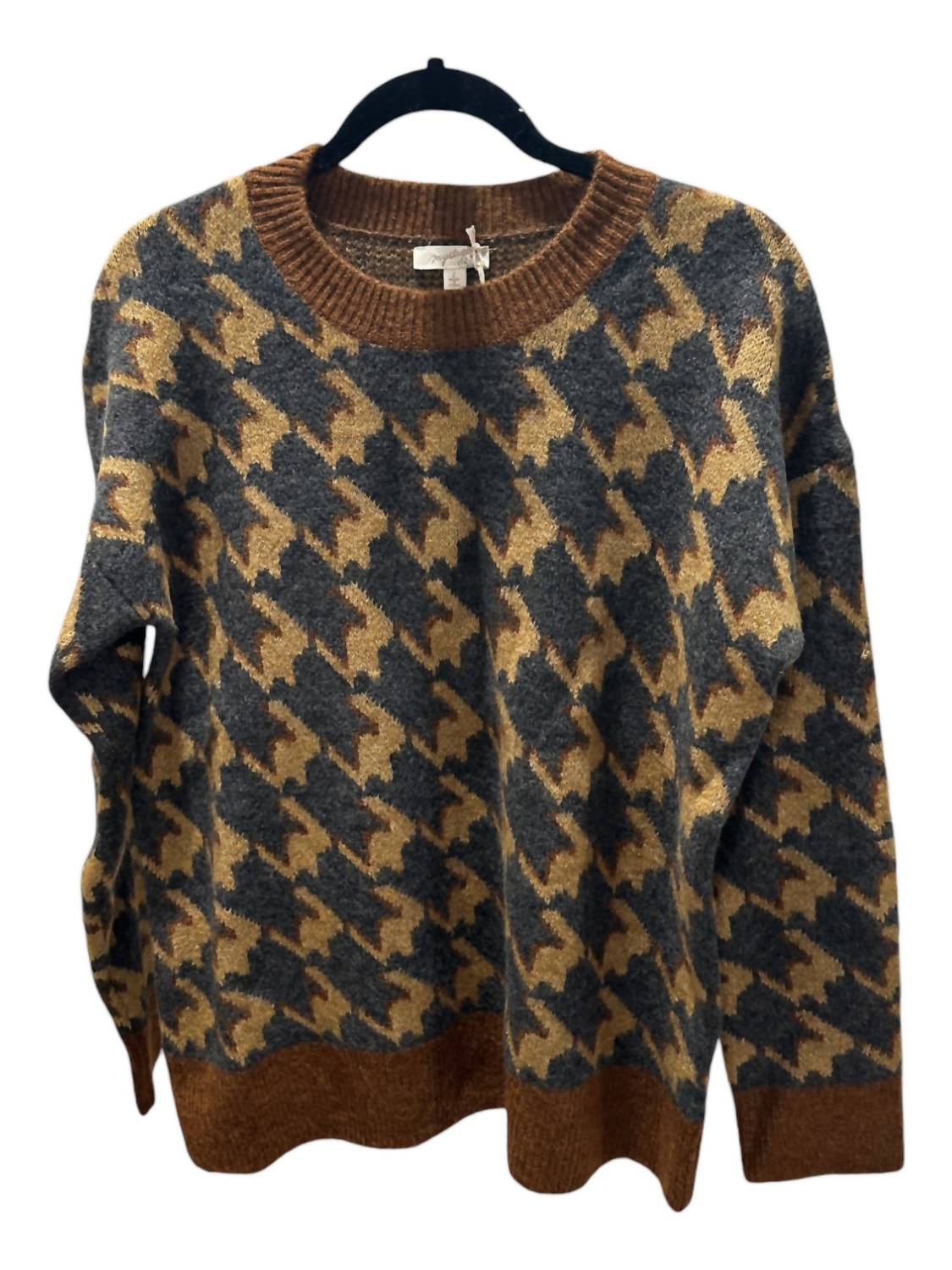 Classic houndstooth pattern in brown and charcoal for a sharp, stylish look. Cozy and warm, ideal for winter layering. Crew neckline. Pull-on style. 100% Cotton.