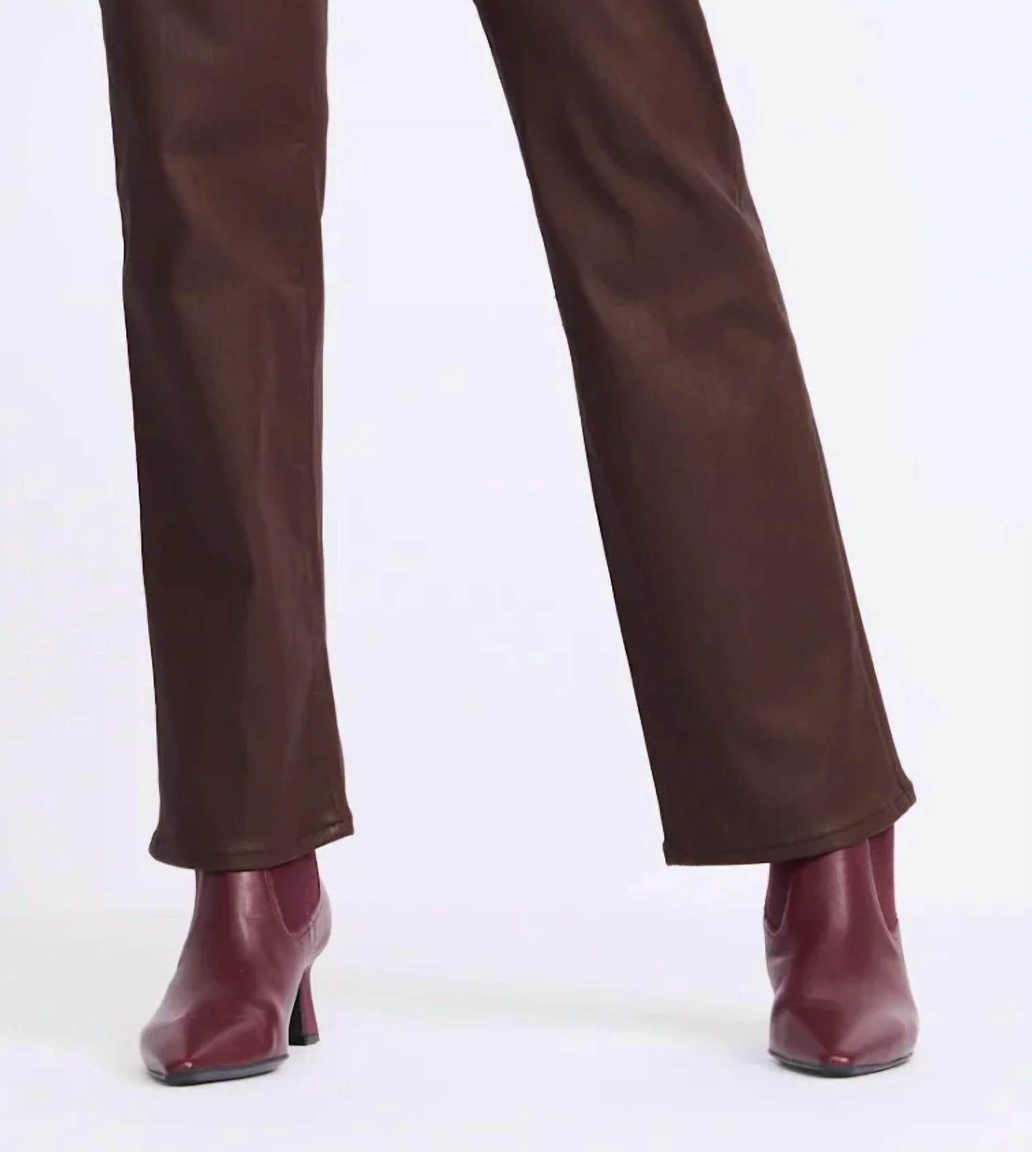 A perfectly tailored straight leg that you'll want in every color! Elevate your wardrobe with the DAZE Emelia Vintage Straight Leather Pants, crafted in a luxurious espresso hue. These women's pants feature a high-rise comfort fit and straight leg style, complete with a solid pattern that effortlessly complements any look. Designed with a button closure, this piece blends vintage charm with modern flair, perfect for everything from coffee dates to festive holiday parties. Enjoy the unique coated leather texture that delivers the appearance of luxe leather while maintaining superior comfort.