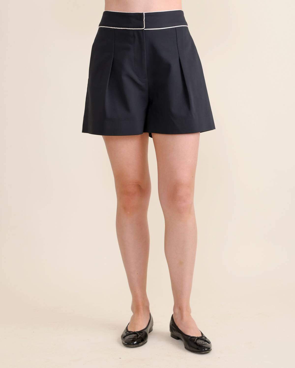 High-waist is here to stay and we especially love this style short. Introducing the Maria Short by S'edge, a stylish and versatile piece in classic black adorned with white contrast trim. Made from a cotton blend, featuring 50% cotton, 46% Tencel, and 4% spandex, these high-waist shorts are both comfortable and chic. With thoughtful details like pockets, you'll find these shorts perfect for various occasions. Care for them is easy with machine wash cold and tumble dry low instructions. Model is wearing size small.