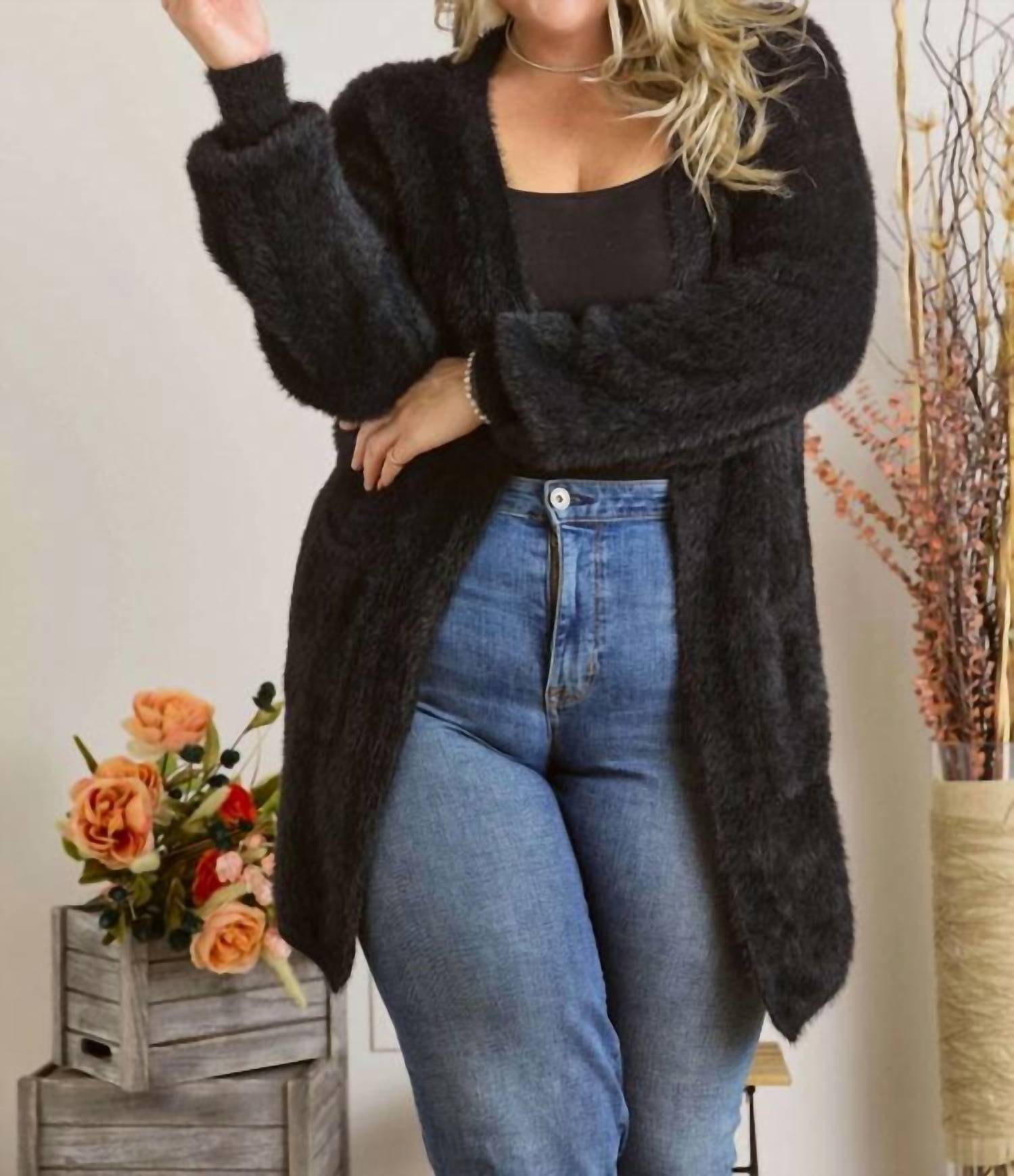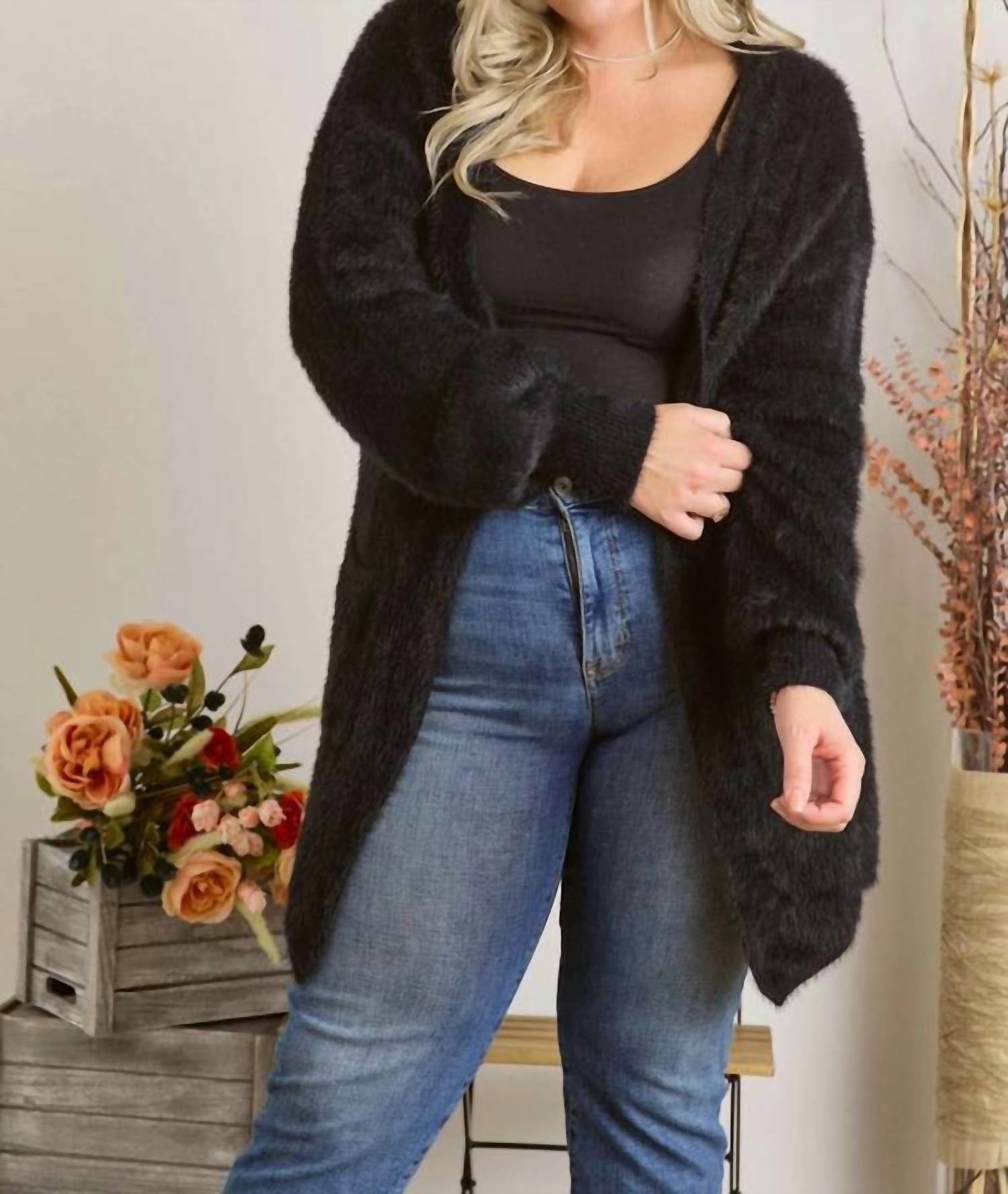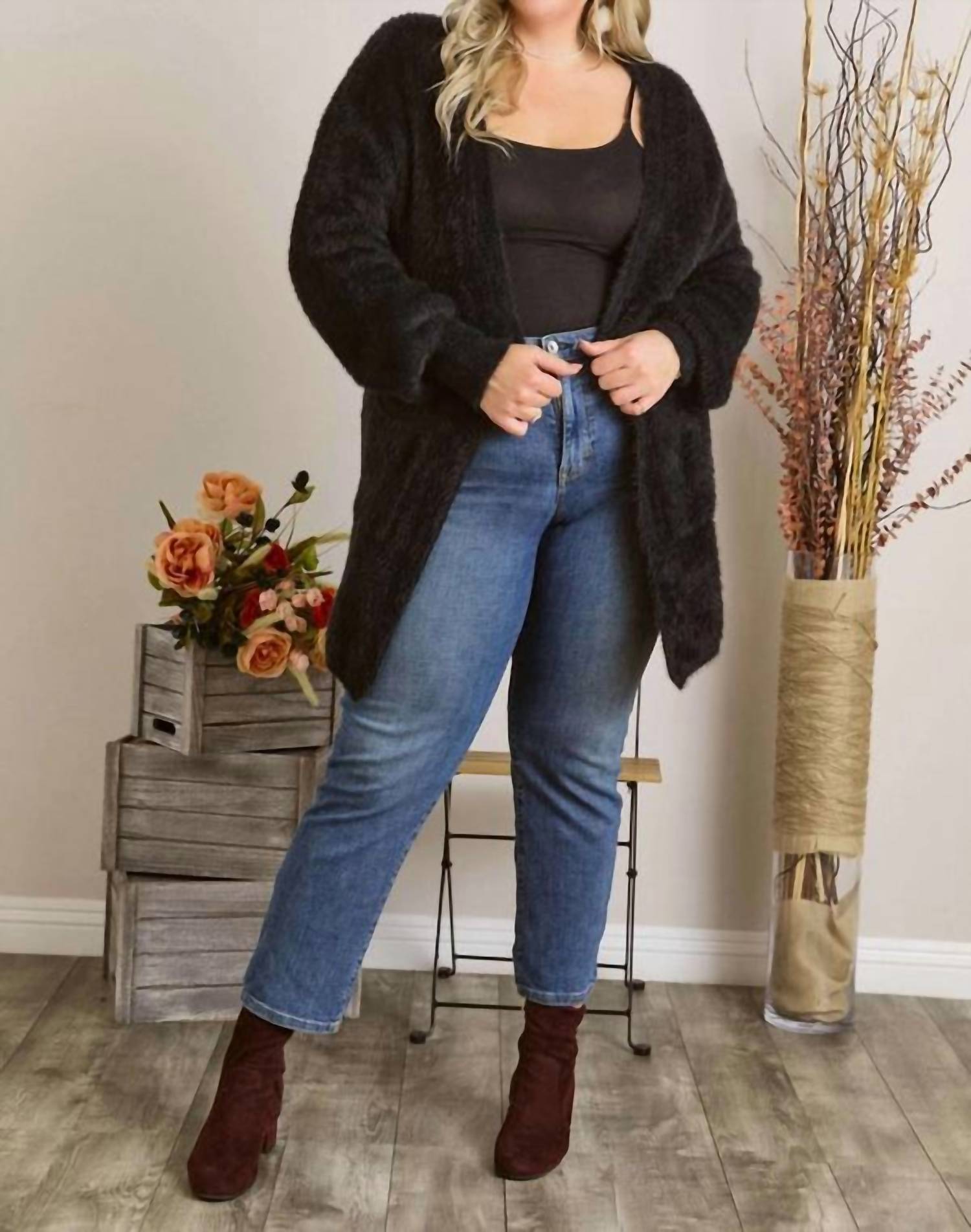 Adora - Curvy Fuzzy Solid Open Cardigan