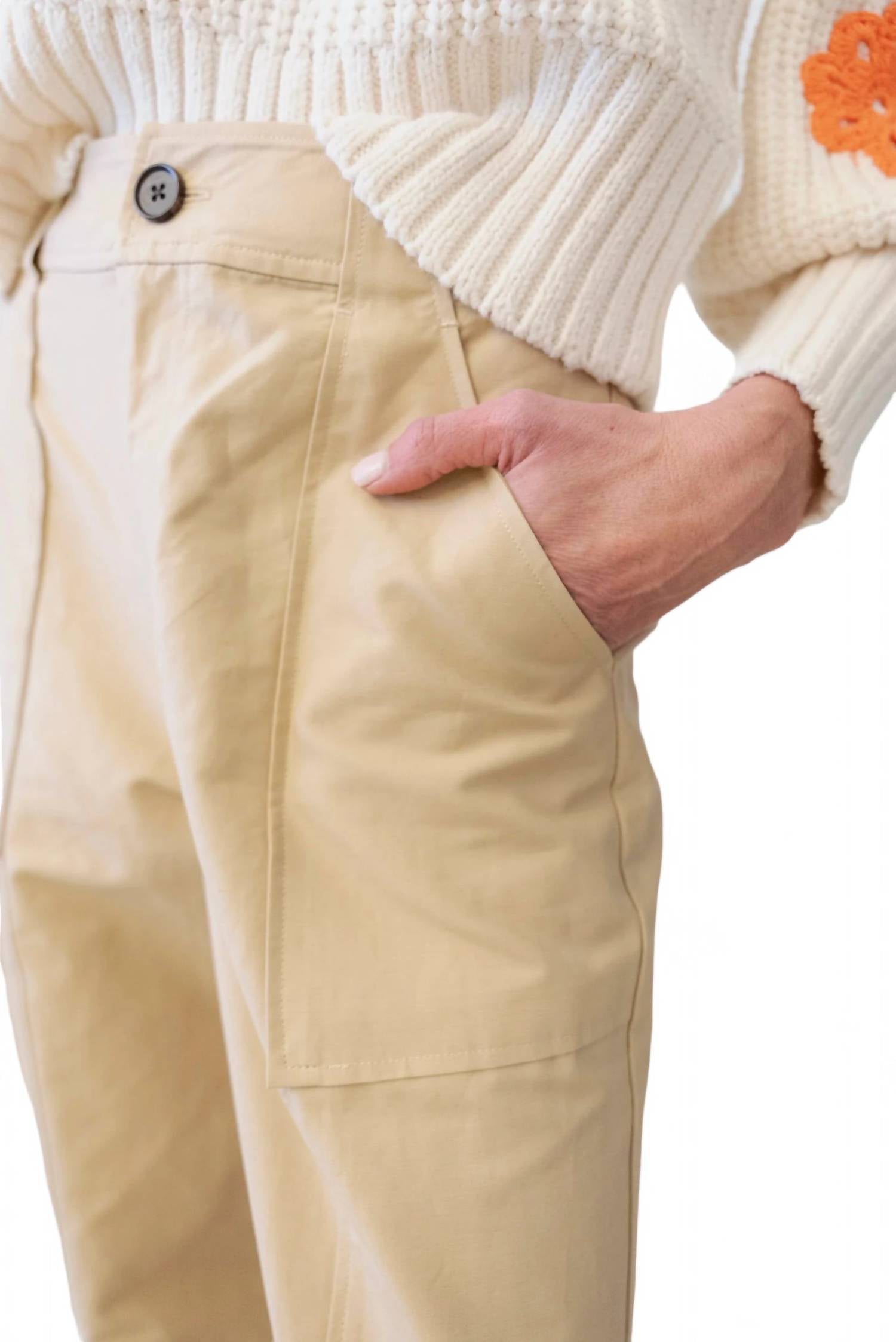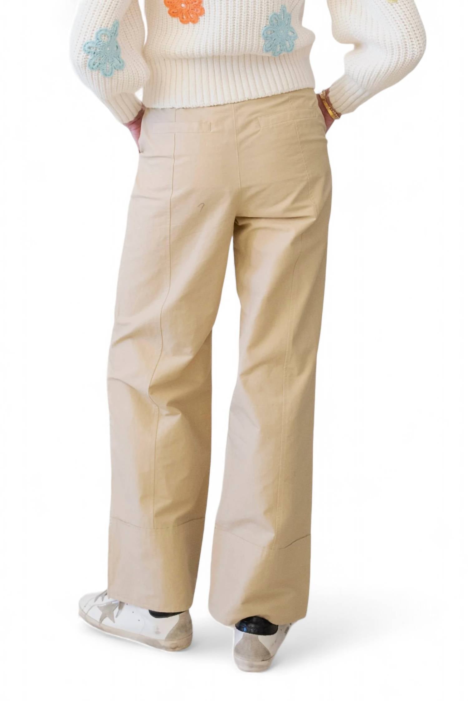 Crafted from lightweight, non-stretch slubbed weave fabric, offering a relaxed and breathable fit. They feature a button closure with a zip fly, along with patch hip pockets and welt back pockets for practicality. Made from 73% cotton and 27% linen, they ensure comfort and durability. Hand wash recommended for care. Measurements from size 0 include a rise of 12.25 inches (31 cm), an inseam of 30.75 inches (78 cm), and a leg opening of 20.5 inches (52 cm).