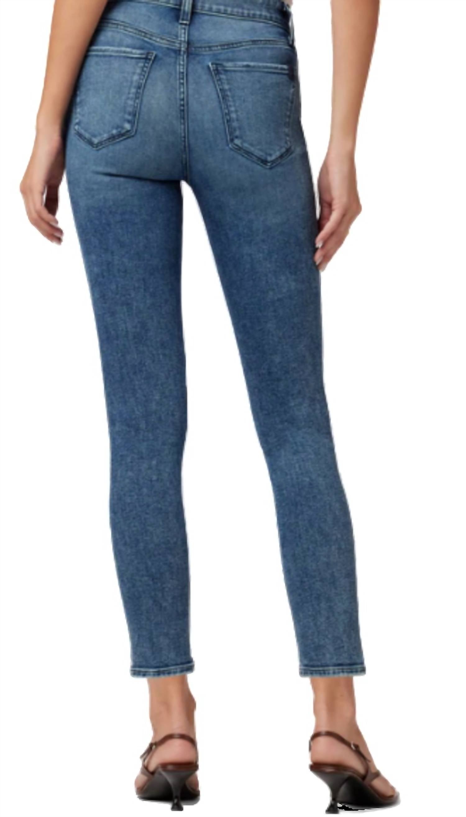 High-rise, skinny fit jean. Medium wash with local grinding, top whiskering and subtle acid wash in a super sleek silhouette. 10" RISE. 28" INSEAM. 93% Cotton, 6% Elastomultiester, 1% Elastane.