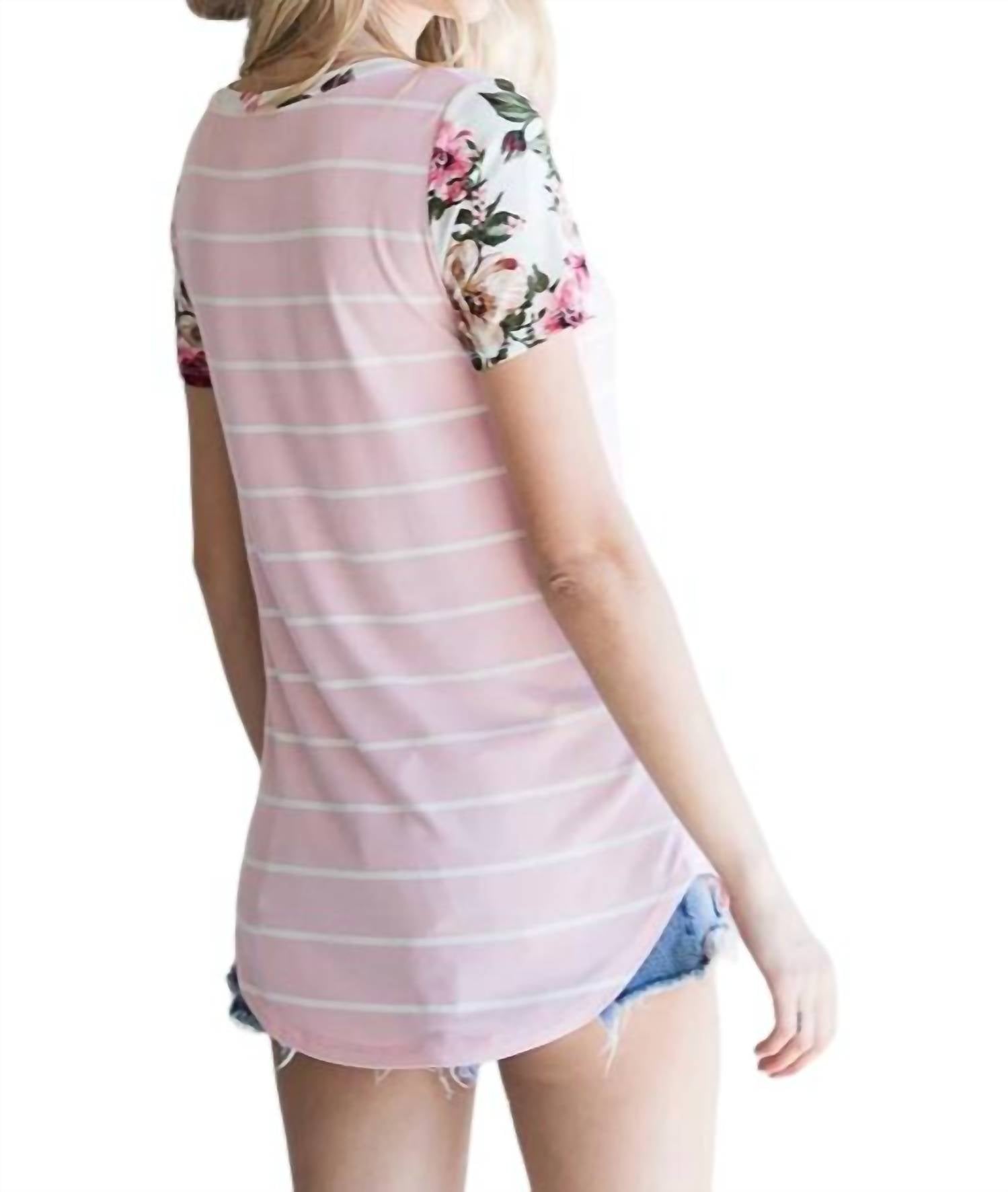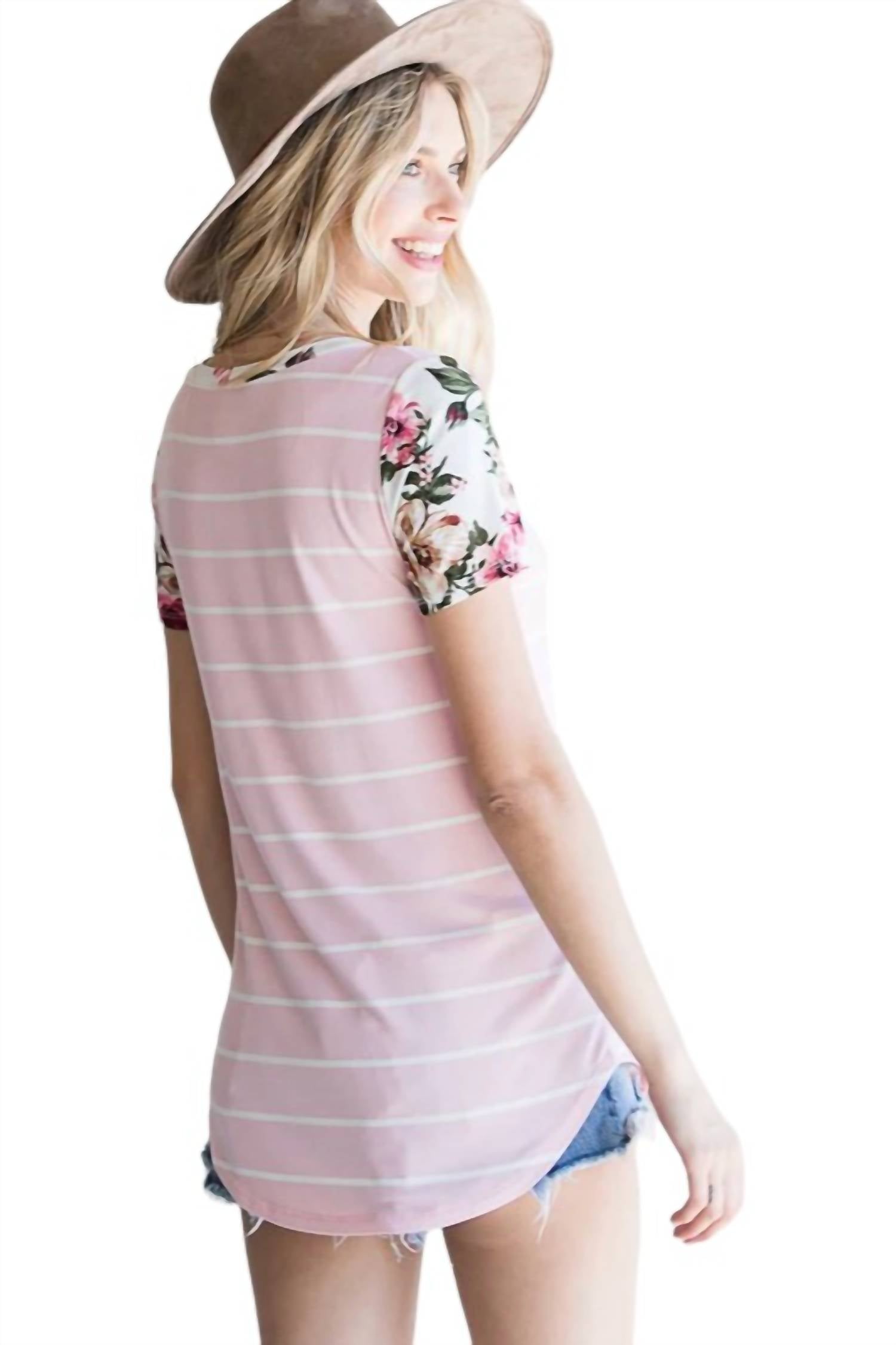 Charming tee blends a playful floral print with classic stripes for a truly unique design. Delicate floral details adorn the neck hem, sleeves, and pocket. Offering a soft contrast to the bold stripes on the bodice. Made from high-quality rayon. Comfortable and breathable fit. Pull-on closure and relaxed crewneck make it effortlessly easy to wear. Short sleeves keep you cool and stylish.