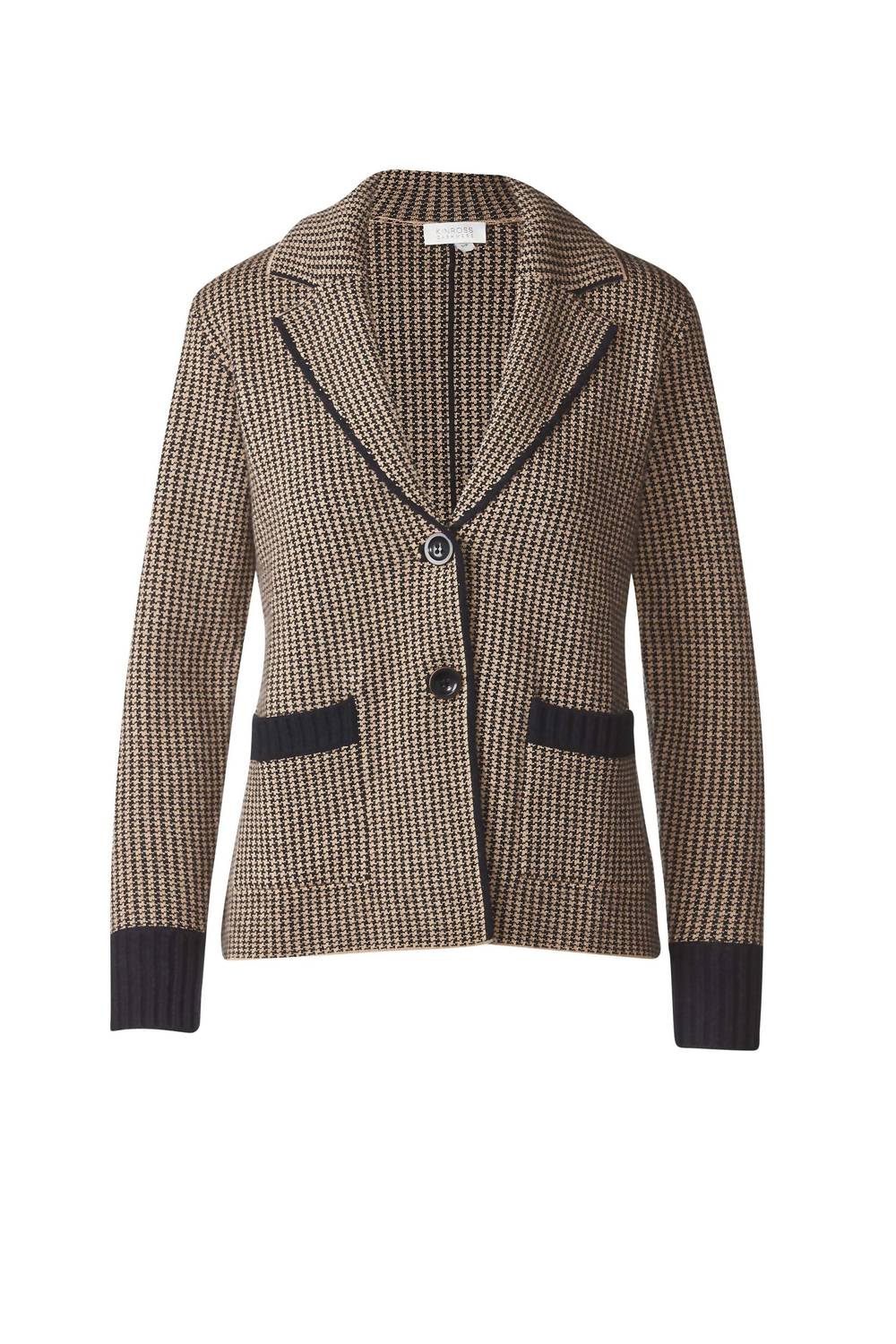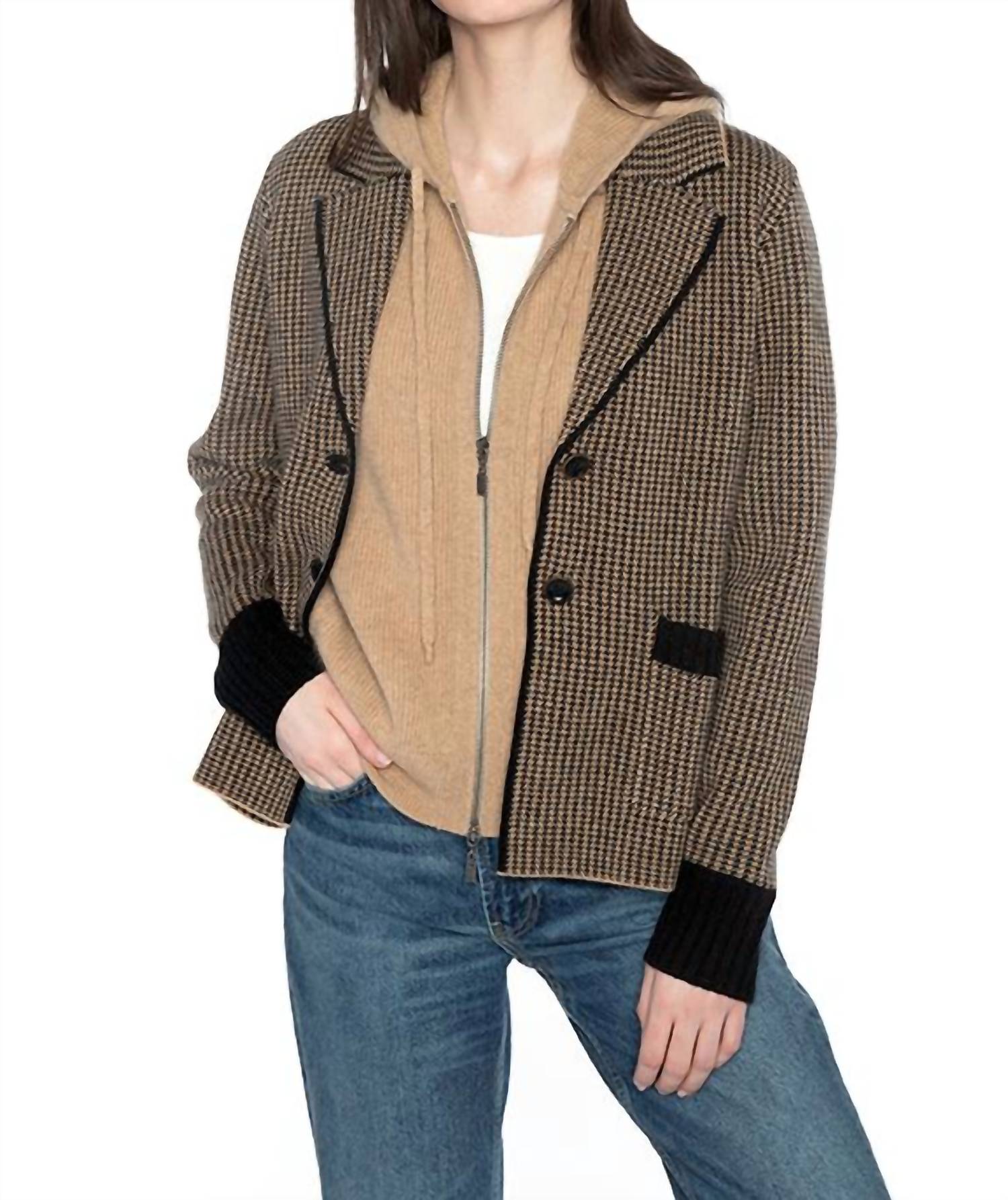 Throw this adorable cardigan over any cami or tank top. This beautiful houndstooth print cardigan is crafted from a luxurious cashmere and wool blend for optimal comfort and style. Featuring front buttons, grey trim and cuffs, and a notch collar to easily elevate any look. Kinross CashmereHoundstooth Notch Collar Cardigan Wool, Cashmere in Slate/CamelButton Front CardiganHoundstooth PrintGrey Trim and CuffsNotch CollarFront Side PocketsLong SleevesTrue to Size