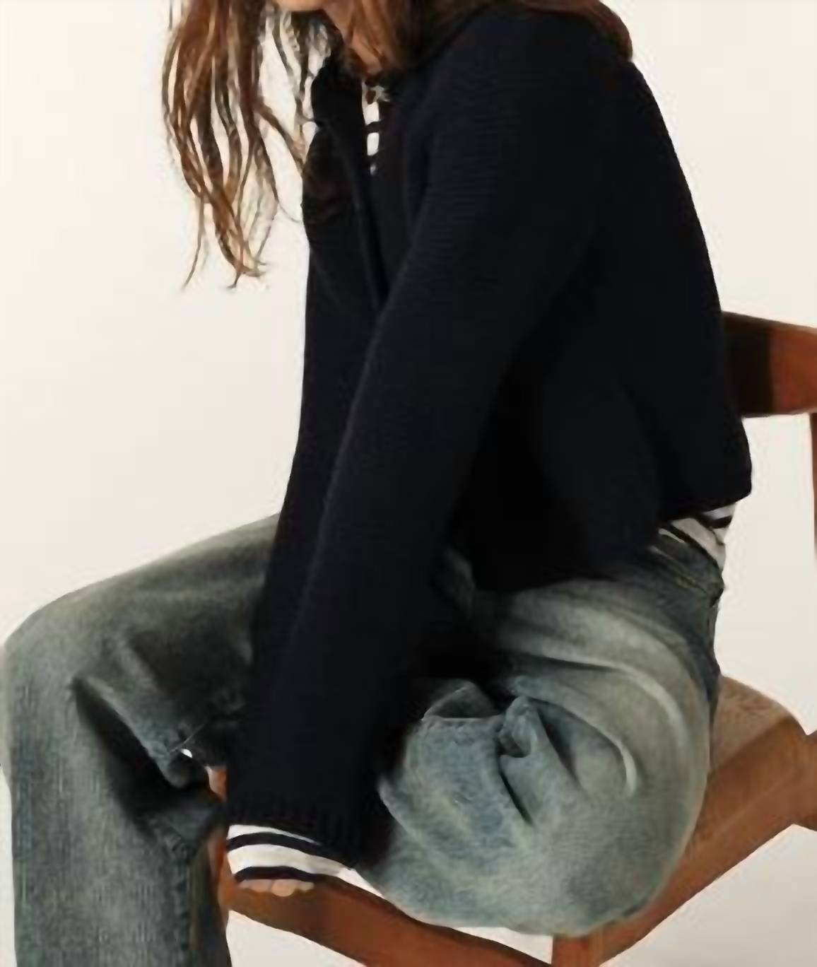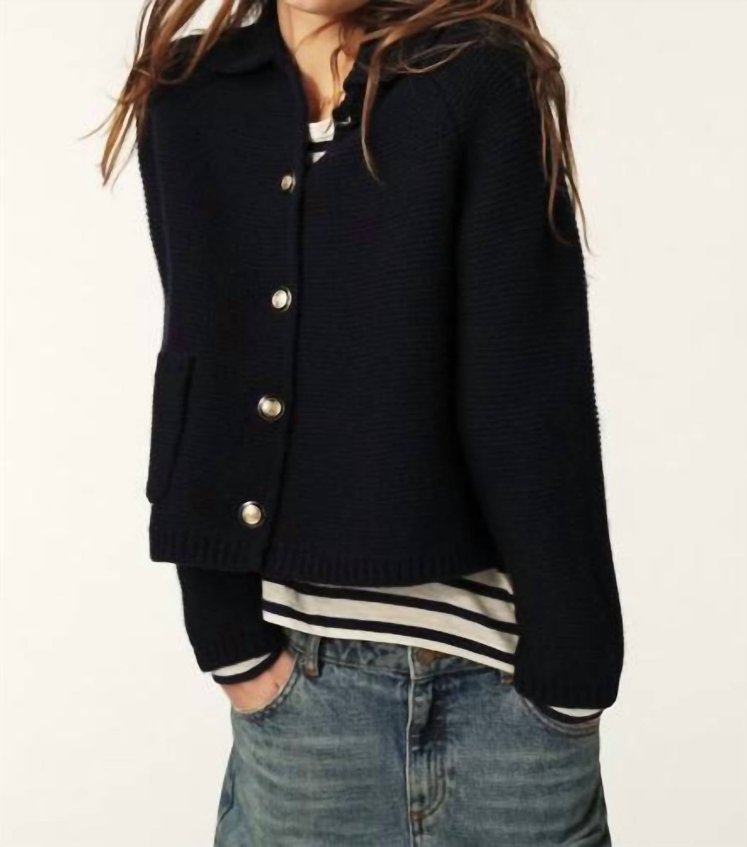 A jacket so versatile you can literally wear it with anything. Introducing the Gabriel Cropped Jacket by ba&sh, a stylish essential for your winter wardrobe. This marine-colored jacket features long sleeves, a charming Peter Pan collar, and a textured pattern for added elegance. Made with responsibly sourced wool, it ensures the welfare of animals and sustainable pasture management. Closure: Button closure. Care: Hand wash and lay flat to dry. Perfect for a minimalist vacation look, this piece offers ribbed edges and convenient pockets for practicality.