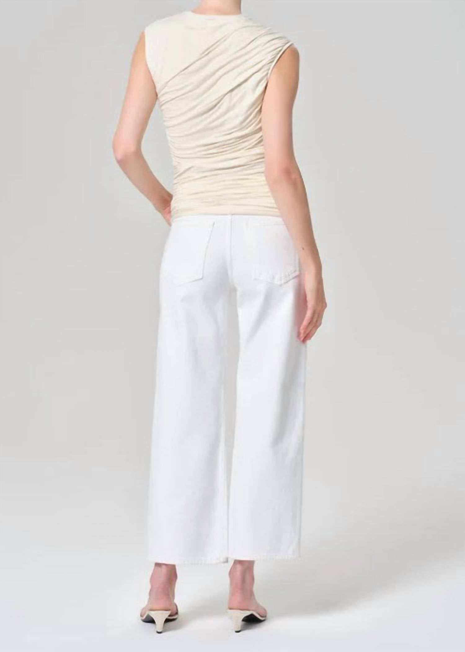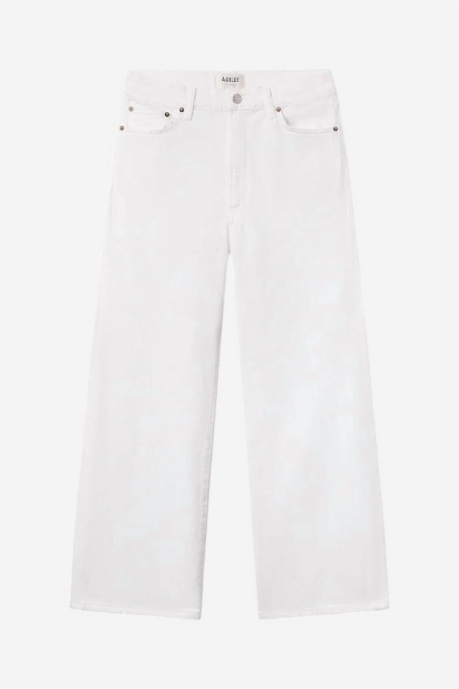 The perfect skinny jeans to wear with your favorite boots this season! Introducing the AGOLDE Harper Crop Jean in Sour Cream, a trendy choice for the minimalist wardrobe. These jeans boast a relaxed fit with a high rise of 11.25" and a 27" inseam, crafted from a cotton blend (98% Cotton, 2% Elastane) for comfort and stretch. Made in Turkey, the jeans feature a solid pattern with a zip fly closure and subtle cropped wide straight legs. Care involves machine washing cold inside out, with tumble drying on a low setting for easy maintenance. Model is 5'10" and is wearing a size 27, fitting true to size.