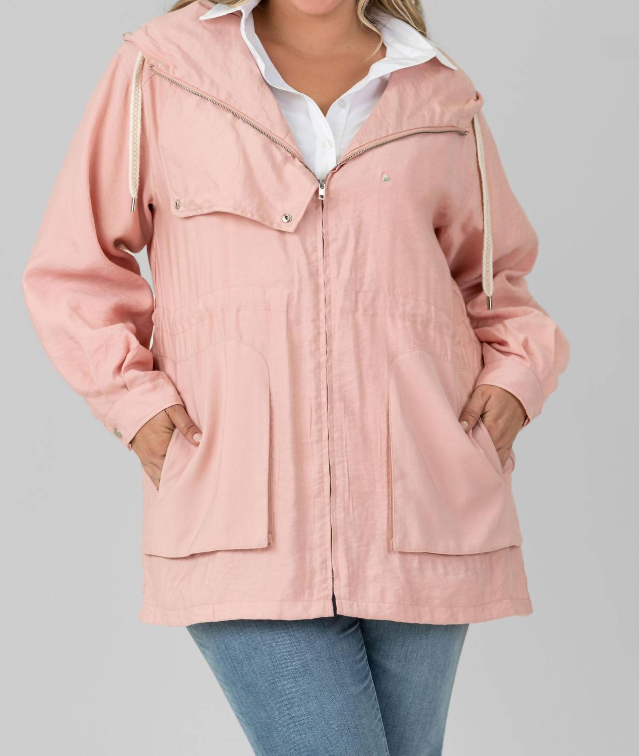 Cute, casual, and comfortable. This jacket is a must have. Designed with long sleeves, this jacket is crafted from premium rayon for a sleek and comfortable fit. It features a reliable zip closure for practicality, complemented by snap closures, a hood, and convenient drawstrings. Perfect for women seeking both form and function, this jacket boasts a relaxed fit and is ideal for plus sizes.