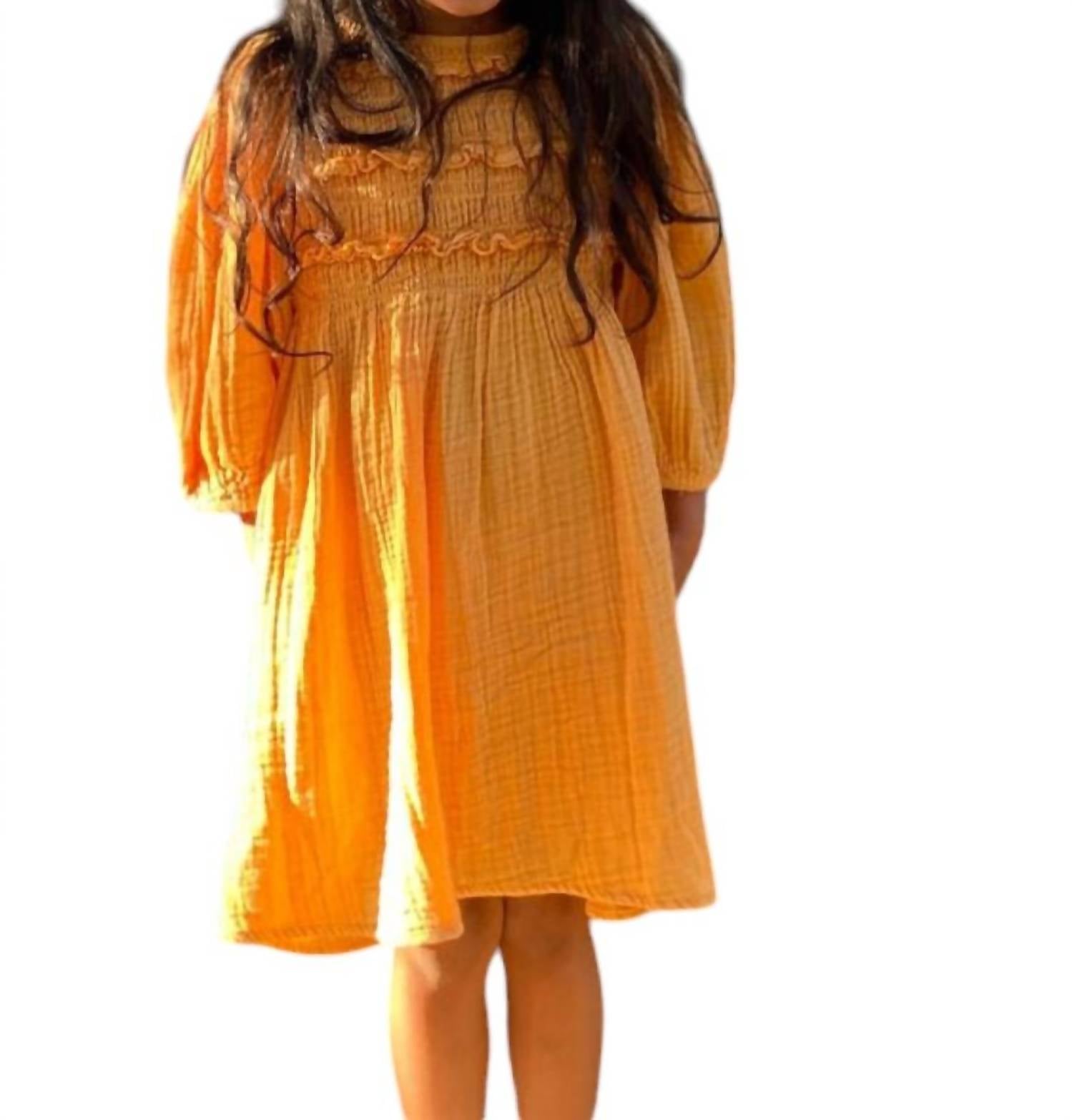 The Girl's Chelsea Shirred Peasant Dress by POPPET & FOX in sunny yellow offers comfort and style. The shirred bodice ensures a flexible fit, while the gathered skirt adds playful movement. Ideal for any occasion, this charming peasant dress is a versatile wardrobe staple.