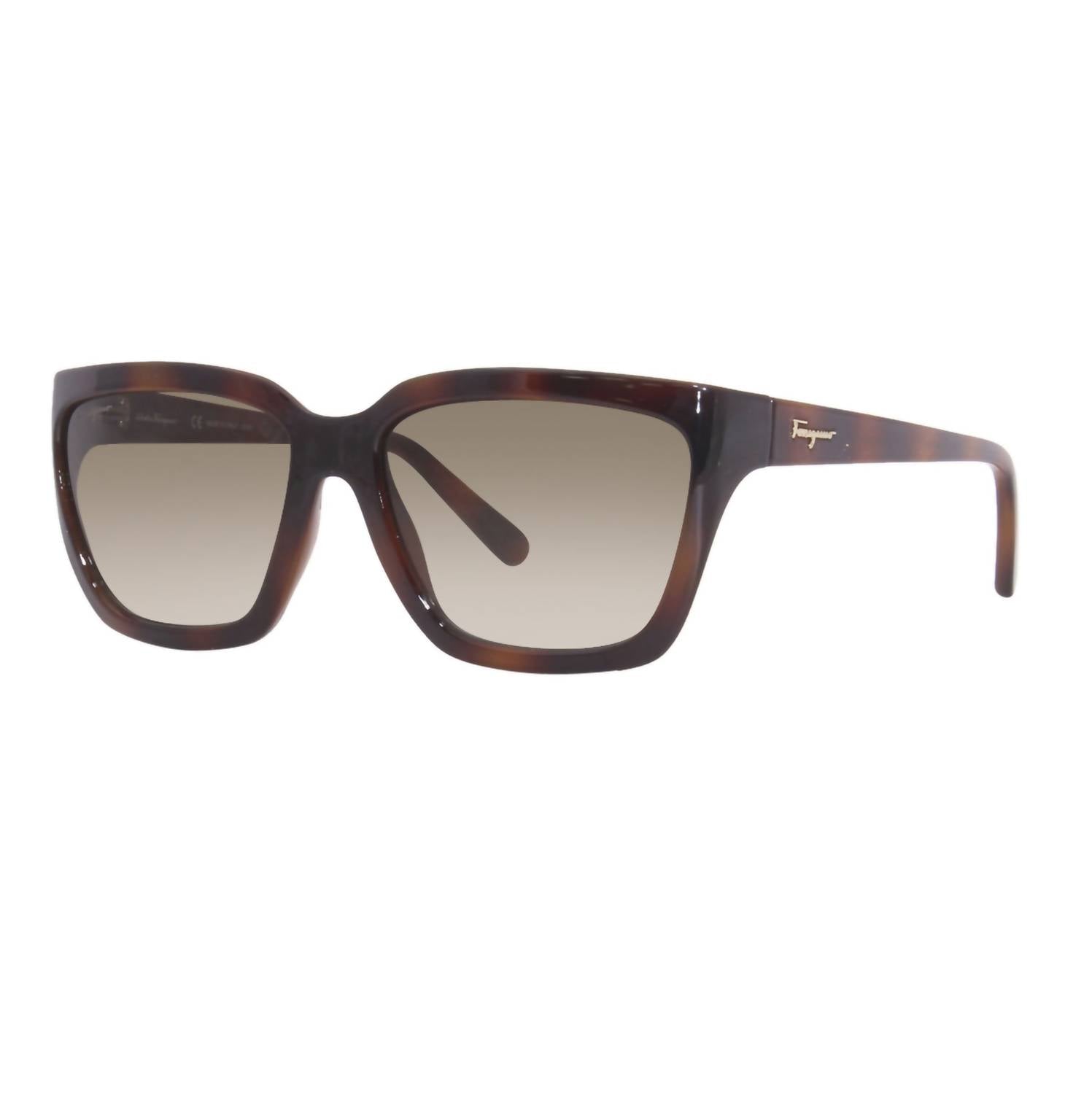 Introducing the Women's SF1018S Sunglasses by Salvatore Ferragamo, a perfect fusion of elegance and functionality. These sunglasses boast a square frame in a sophisticated tortoise color, complemented by dark green lenses offering Category 2 UV protection. Crafted from durable plastic, the full rim design suits oval and round face shapes, ensuring both comfort and style. Size: 59mm lens width, 17mm bridge, 44.5mm lens height, and 140mm temple length make these Italian-made sunglasses a must-have accessory.