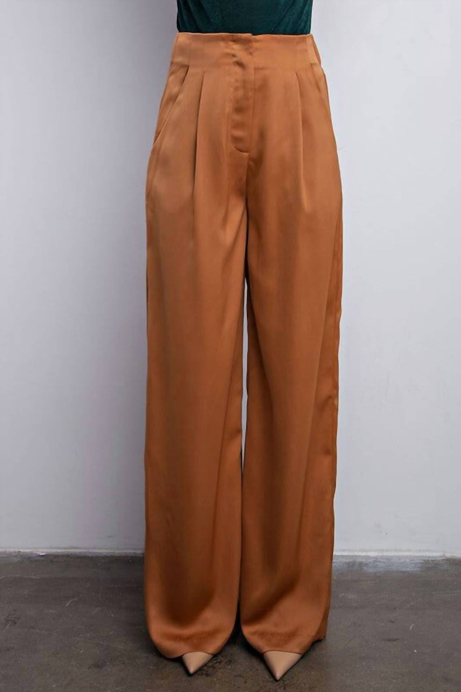 Introducing the Kyle High Waisted Wide Leg Dress Pants by GLAM, the perfect blend of style and comfort. These camel-colored pants feature a relaxed wide-leg style, offering a sleek silhouette for any occasion. Composition: 97% Polyester, 3% Spandex. Closure: Zip closure. Pockets: Yes. Care: Machine wash and tumble dry. Available in sizes Small, Medium, and Large, these pants are true to size and perfect for your Thanksgiving or engagement celebrations.