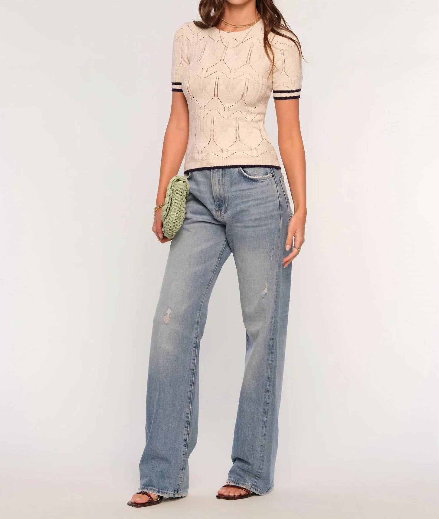 Pair this with your favorite jeans and slides for your next girls night out. Elevate your spring wardrobe with the Halton Top by Heartloom, a chic option for versatile styling in an ivory hue. Crafted from a 72% viscose and 28% polyester melange knit, it features short sleeves and a crewneck design with a geometric stitch pattern for added texture. This slim-fitting piece is 21.5 inches long from the high point of the shoulder, making it ideal for pairing with baggy jeans. Closure: Pull-on.
